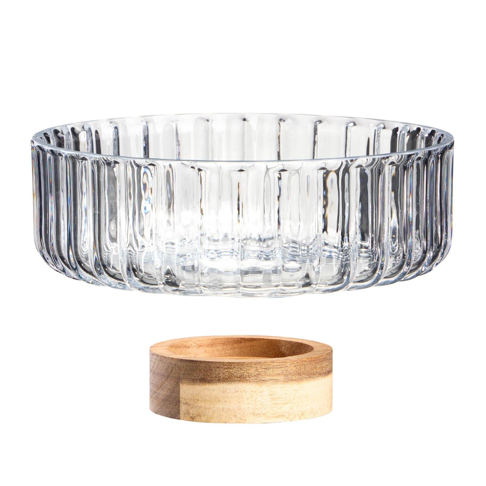Грациозный дизайн с рифлёной поверхностью добавляет изделиям особый шарм и современный стиль. Прочное и натуральное деревянное основание из акации придает стабильность и подчеркивает натуральность материала.