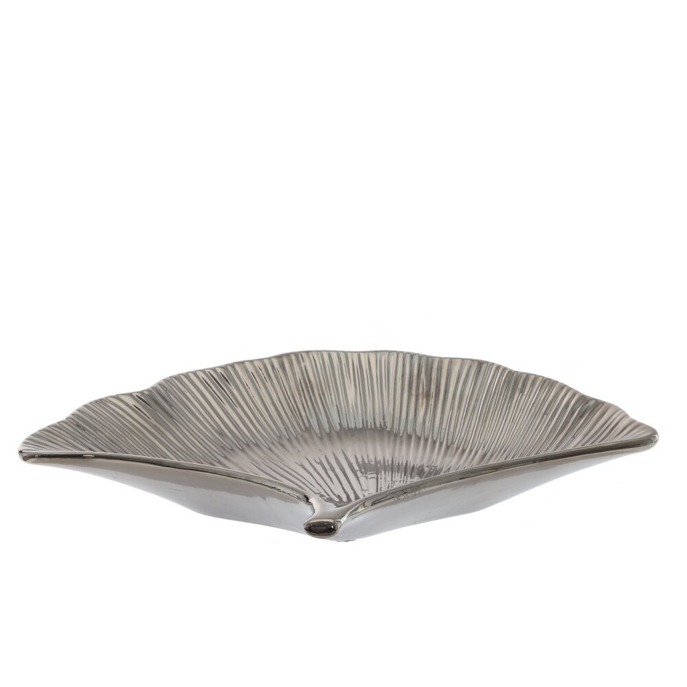 Элегантное декоративное блюдо из фарфора в форме листа станет изысканным украшением интерьера. Гладкая поверхность и тонкие рельефные линии придают ему особую утонченность. Блюдо отлично подойдет в качестве оригинального элемента декора. Фарфор обеспечивает долговечность и устойчивость к внешним воздействиям. Стильный металлический оттенок добавляет изделию современный и роскошный вид, идеально сочетаясь с классическим и современным интерьером. Такое блюдо станет прекрасным подарком для ценителей красивых аксессуаров.