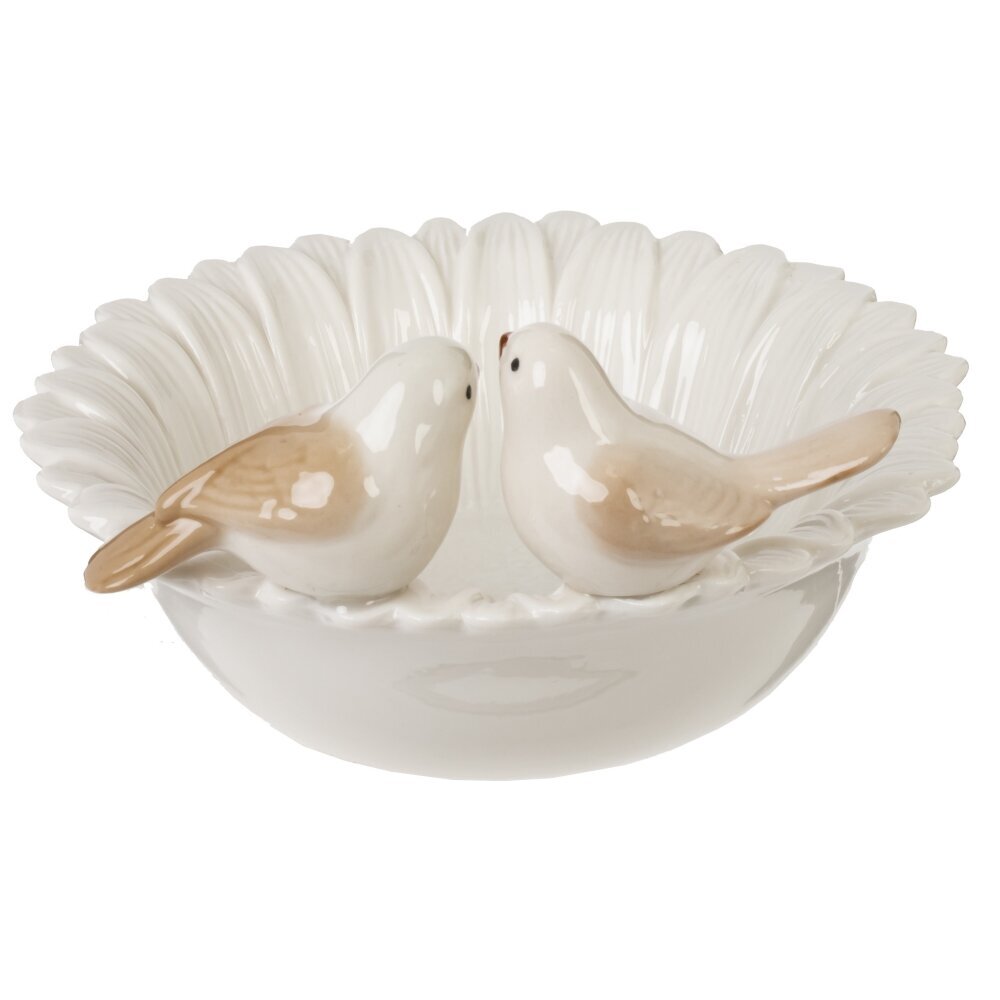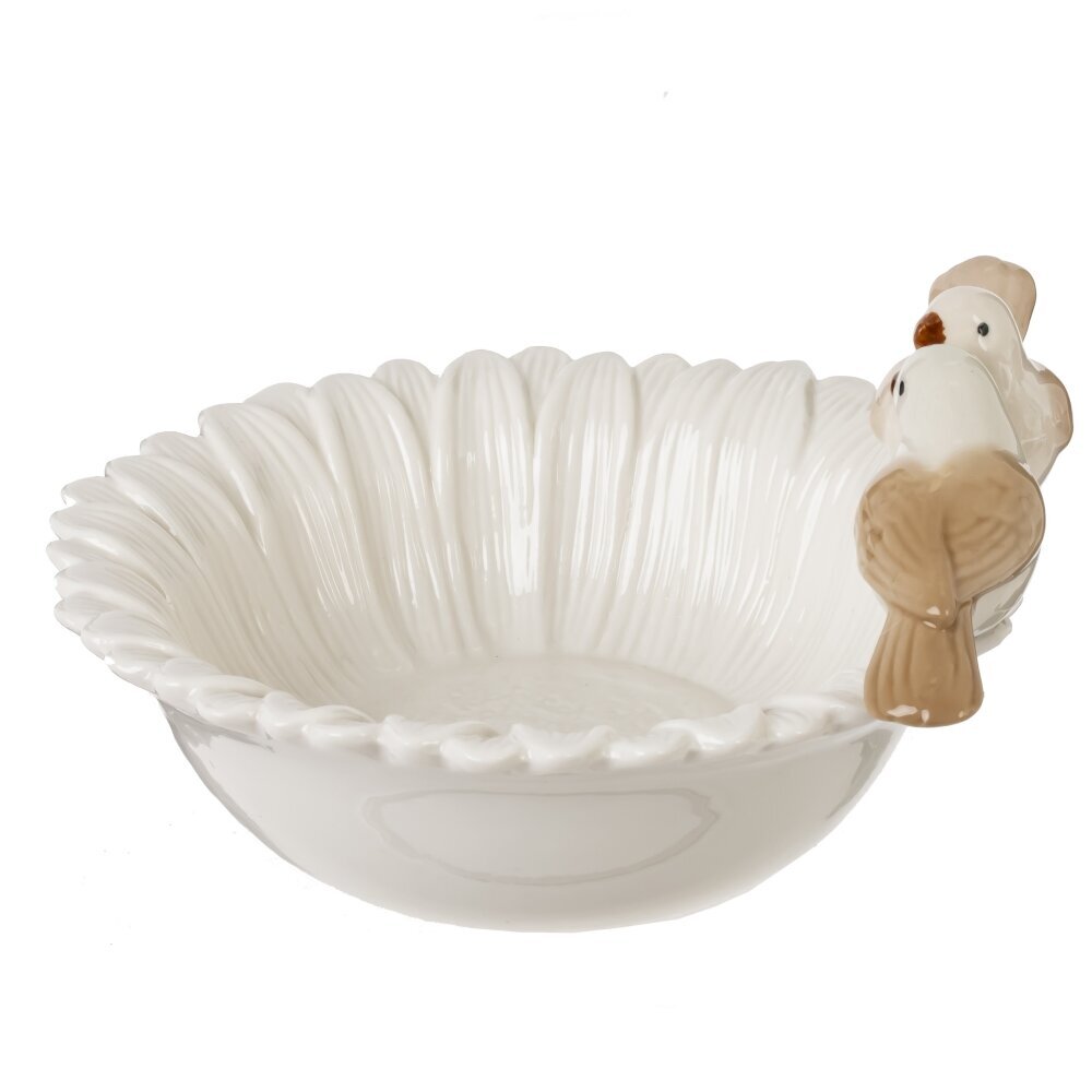 Это блюдо, выполненное из фарфора, прекрасно демонстрирует гармонию природы. Его размеры делают его идеальным для сервировки закусок или десертов, а также для использования в качестве стильного элемента декора. Блюдо выполнено в форме цветка. На краю блюда расположены фигурки птиц. Эта изящная деталь добавляет элемент утонченности и делает блюдо потрясающе привлекательным в любой обстановке.