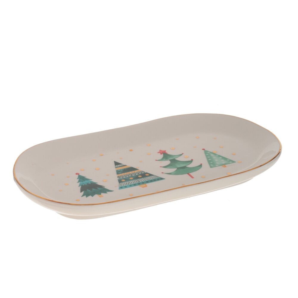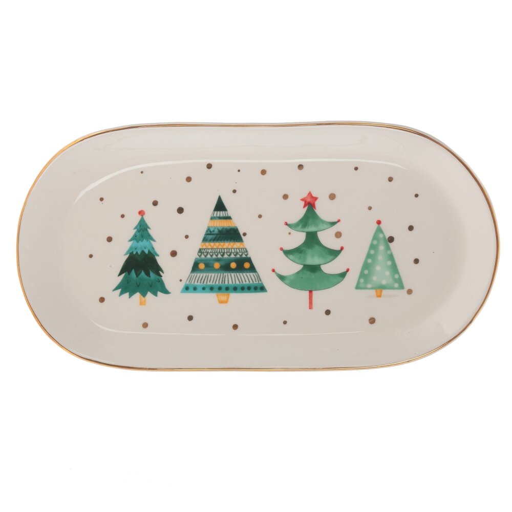 Новогоднее керамическое блюдо овальной формы с ярким изображением елочек сделает ваш Новый год роскошным и уютным. Элегантно сервированный стол будет радовать ваш глаз и произведёт незабываемое впечатление на ваших гостей.