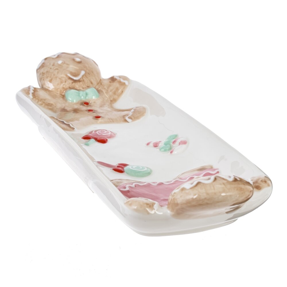 Это изящное белое керамическое блюдо с нежным декором в виде пряничных человечков — идеальный выбор для праздничного стола и уютных домашних вечеров. Аккуратные детали рисунка создают атмосферу тепла и уюта, напоминая о детских праздниках и зимних вечеринках. Блюдо достаточно вместительное для подачи десертов, печенья или фруктов, при этом его классический белый цвет делает декор особенно выразительным и стильным. Высококачественная керамика гарантирует долговечность и простоту ухода, а оригинальный дизайн добавит игривую нотку и праздничное настроение вашему интерьеру. Такое блюдо станет прекрасным подарком для ценителей эстетики и уюта.