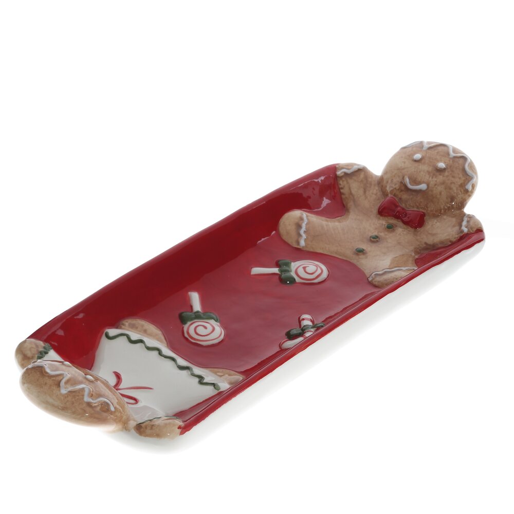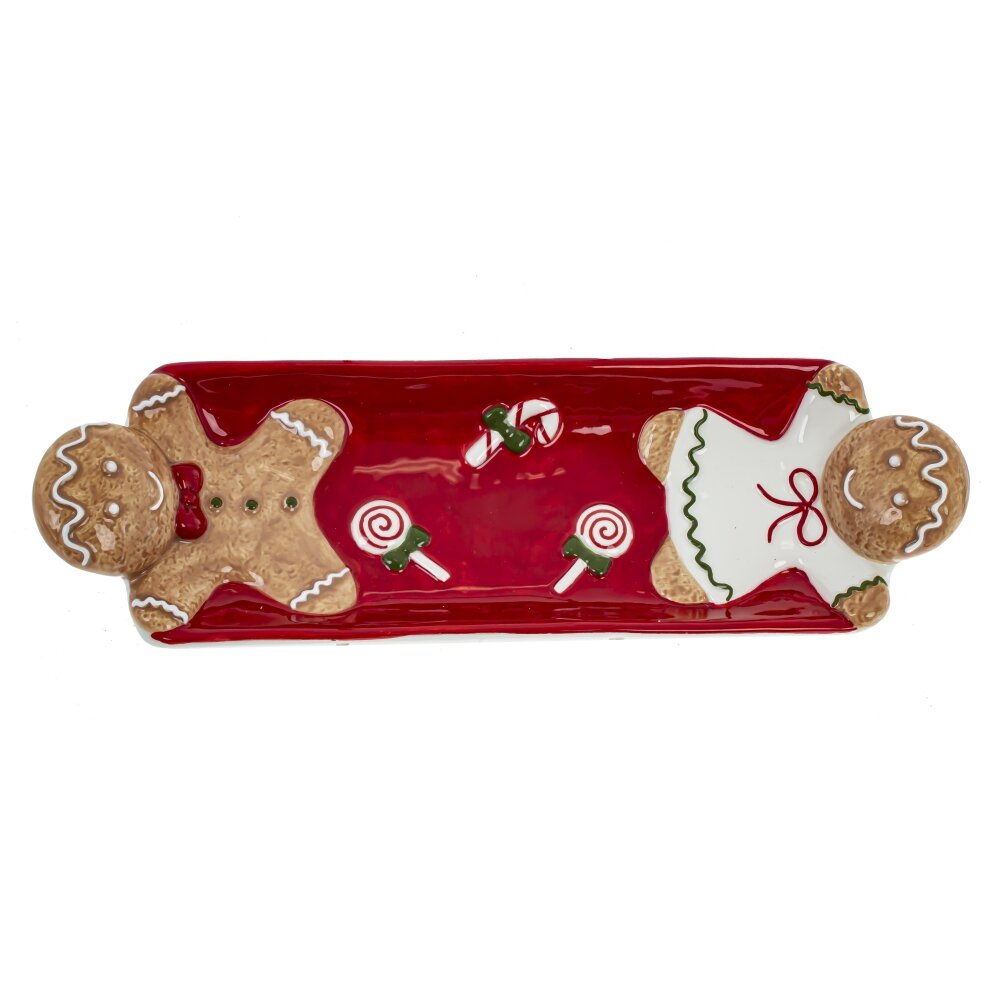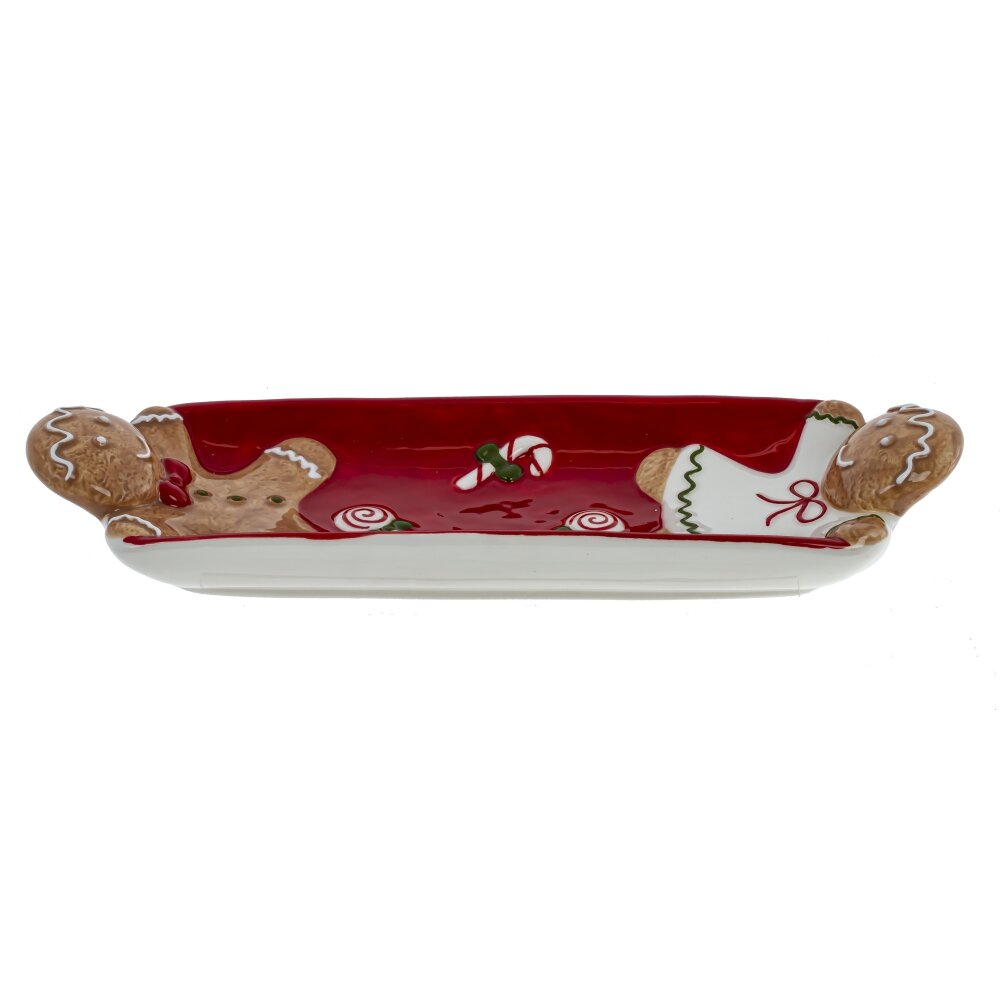 Прямоугольное керамическое блюдо размером 31х10х4,5 см, выполненное в красном цвете и украшенное рельефными пряниками, отлично подойдет для сервировки стола и подачи десертов. Его стильный и яркий дизайн добавит атмосферу праздника к вашему столу и будет радовать вас своим очаровательным дизайном в течение всех праздников.