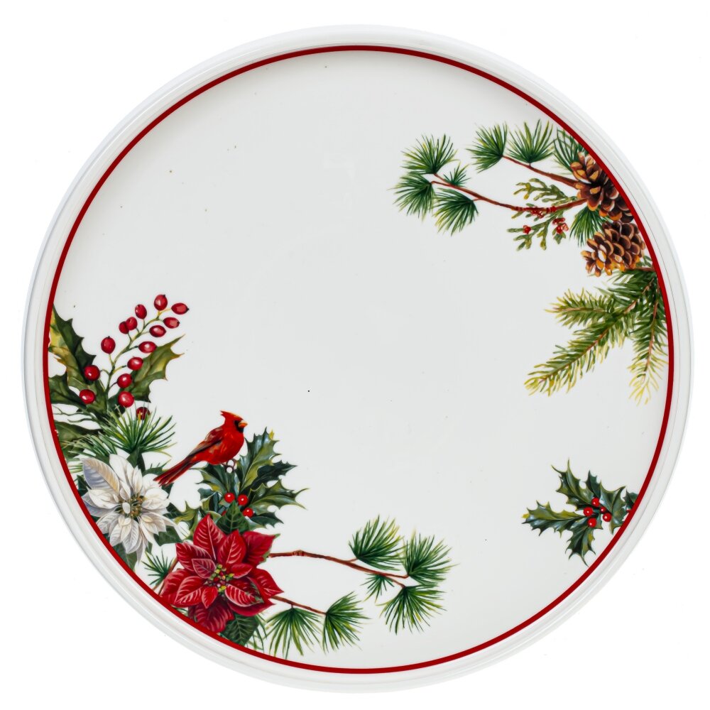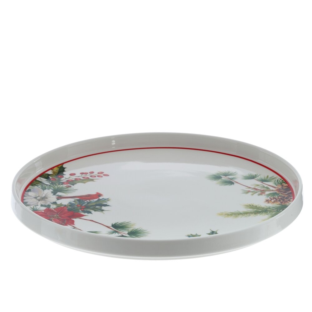 Блюдо "Зимнее волшебство" из тонкостенного фарфора, диаметром 26 см, украсит любое новогоднее застолье благодаря изысканному рисунку с новогодними ветвями, яркими цветами пуансеттии и ягодами. Имеет невысокий бортик. Уникальный дизайн этого блюда делает его не только прекрасным элементом сервировки стола, но и идеальным подарком для ценителей красоты и необычных вещей.