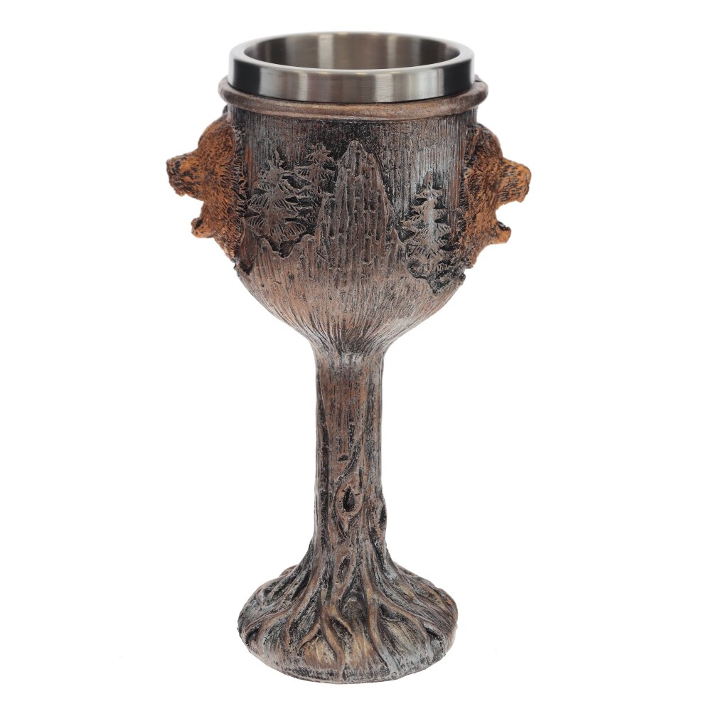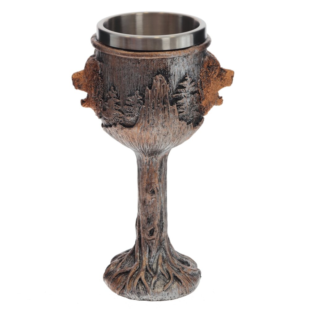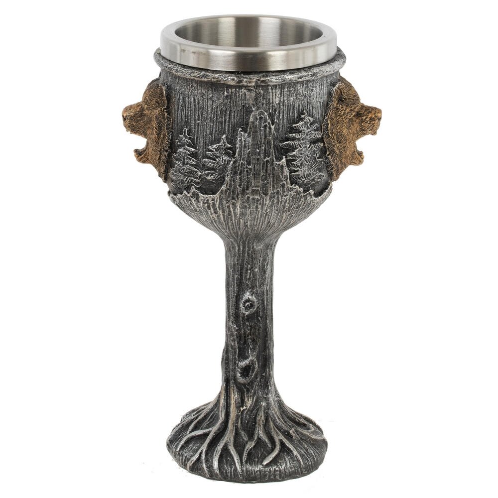Бокал выполнен из нержавеющей стали с акриловой смолой. Внешняя отделка бокала имитирует резьбу по металлу, создавая эффектный и роскошный внешний вид. На бокале изображен медведь, символ силы и мощи, что делает его не только стильным предметом сервировки, но и дополнительным акцентом в декоре стола. Объем: 200 мл.