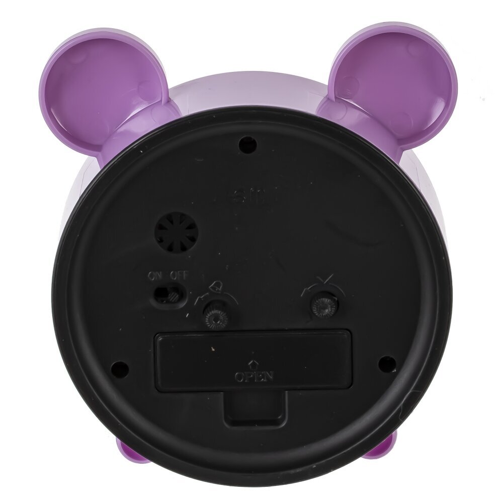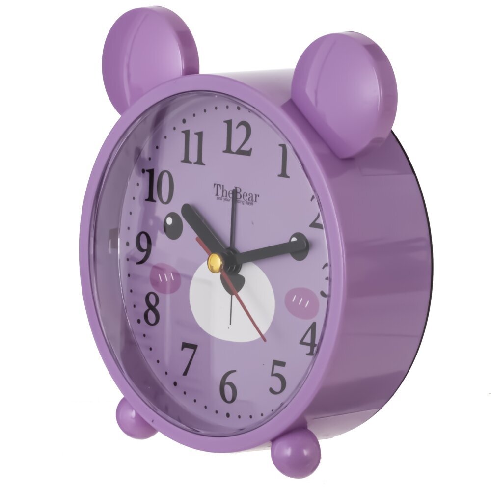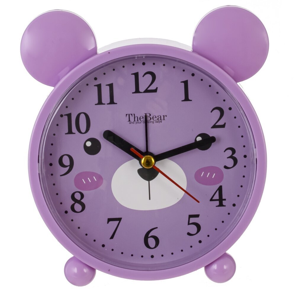 Перед вами оригинальный будильник, выполненный в форме милого медвежонка. Корпус изделия изготовлен из прочных полимерных материалов, дополнен металлическими элементами, что обеспечивает долгий срок службы и устойчивость к механическим повреждениям. Дизайн часов выполнен в нежном сиреневом цвете, циферблат украшен рисунком мордочки медведя, а верхняя часть корпуса снабжена округлыми ушками, что делает будильник особенно привлекательным для детей. Часы питаются от одной батарейки типа AA (не входит в комплект), что позволяет разместить их в любом удобном месте без необходимости подключения к электросети. Такой стильный и функциональный аксессуар украсит детскую комнату и поможет с легкостью просыпаться по утрам, создавая хорошее настроение на весь день. Диаметр циферблата: 10 см.