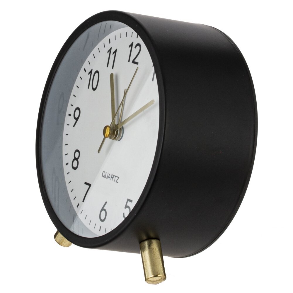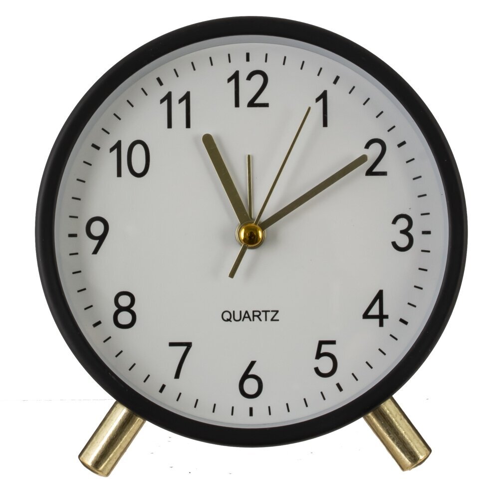 Перед вами классический будильник, выполненный из современных полимерных материалов, металла и стекла. Корпус устройства украшен элегантными металлическими ножками золотого цвета, что придаёт модели дополнительную устойчивость и стильный внешний вид. Циферблат имеет чёткие арабские цифры и минутную разметку для удобного считывания времени. Белый фон с контрастными чёрными отметками обеспечивает отличную читаемость даже при слабом освещении. Стрелки изготовлены из металла, центральная часть украшена золотистой вставкой. Будильник работает на одной батарейке типа AA (не включена в комплект), что делает его мобильным и удобным для использования в любой комнате – на тумбочке, рабочем столе. Компактные размеры и классический дизайн позволяют вписаться в любой интерьер, а надёжные материалы гарантируют долгий срок службы.