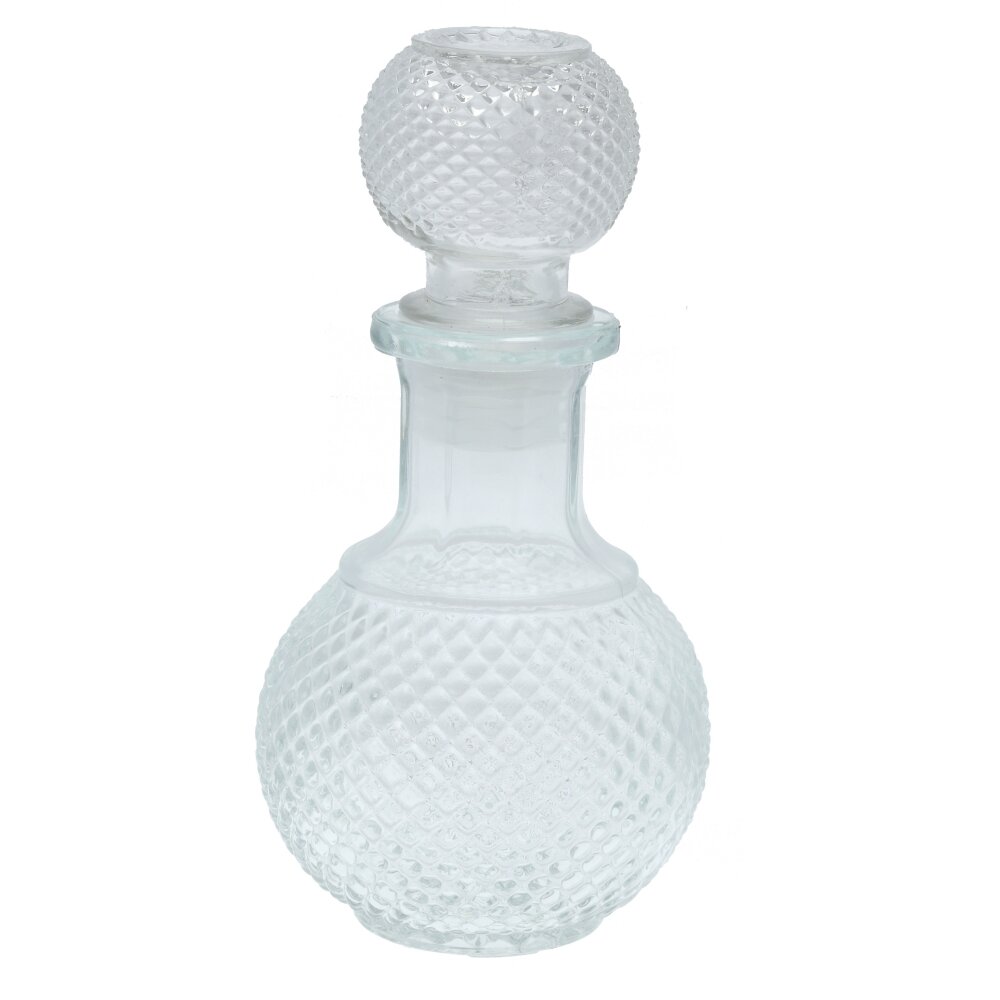 Бутылка-графин для масла или уксуса, выполненная из высококачественного прозрачного стекла. Её объём составляет 180 мл, что делает этот графин крайне удобным для ежедневного использования на кухне или сервировки праздничного стола. Особое внимание привлекает интересная фактурная поверхность корпуса и крышки: стекло украшено рельефным узором в виде мелкой сетки, что не только придаёт изделию утончённый внешний вид, но и предотвращает случайное выскальзывание из рук. Классическая форма с плавными изгибами и широким основанием делает графин устойчивым. Такая емкость подходит для хранения различных жидкостей: оливкового масла, уксуса, соусов или даже домашних настоек. Этот стеклянный аксессуар гармонично впишется в любой интерьер кухни или столовой и подчеркнет вкус хозяйки к красивой и функциональной посуде.