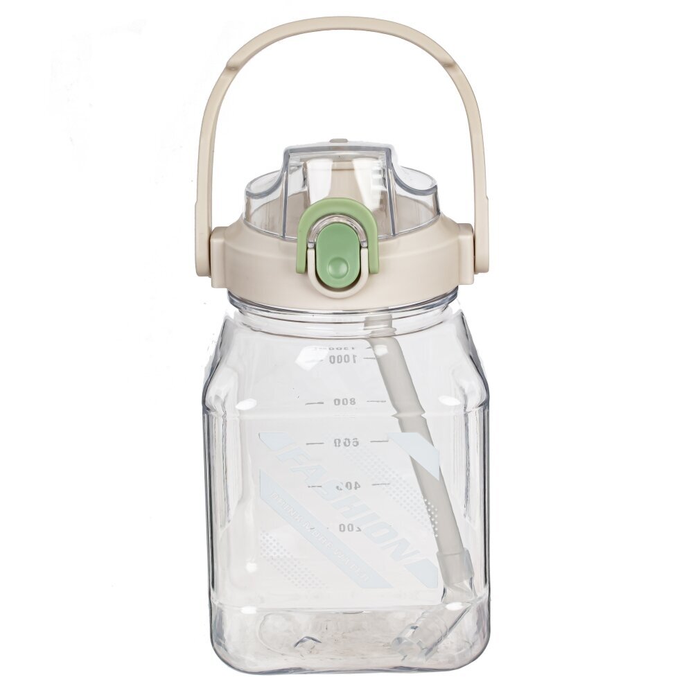Практичная бутылка объемом 1300 мл, выполненная из прочных и легких полимерных материалов. Дизайн изделия сочетает в себе прозрачные и матовые элементы, что позволяет удобно контролировать уровень жидкости внутри. Бутылка оснащена удобной ручкой для переноски, а также специальной крышкой с механизмом защиты от проливания, что делает ее идеальной для активного образа жизни, занятий спортом или использования в поездках. Встроенная трубочка обеспечивает легкий доступ к напитку без необходимости открывать крышку полностью. Эргономичная форма бутылки обеспечивает удобный хват и предотвращает скольжение, а плотное закрытие препятствует протеканию жидкости. Такой аксессуар станет отличным выбором для детей и взрослых, заботящихся о своем здоровье и комфорте. Представлено в четырех вариантах.