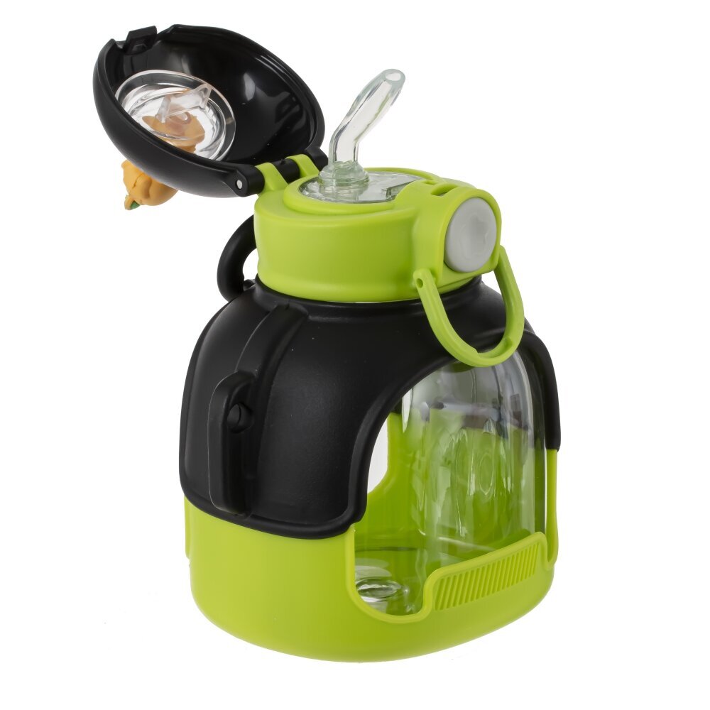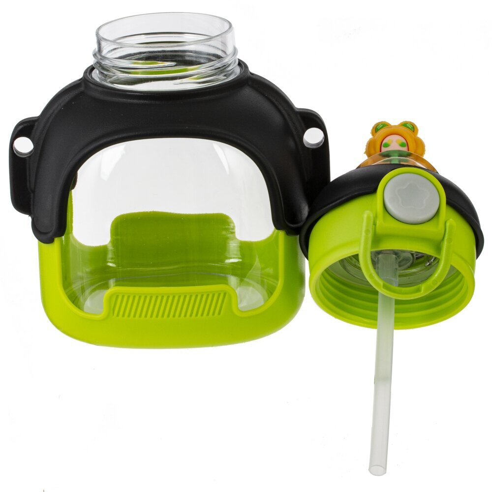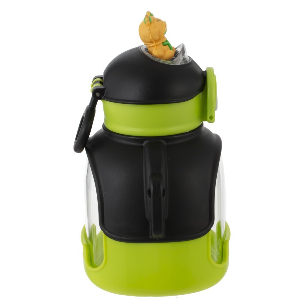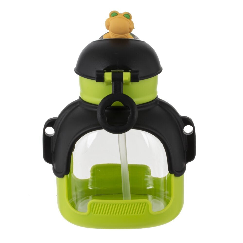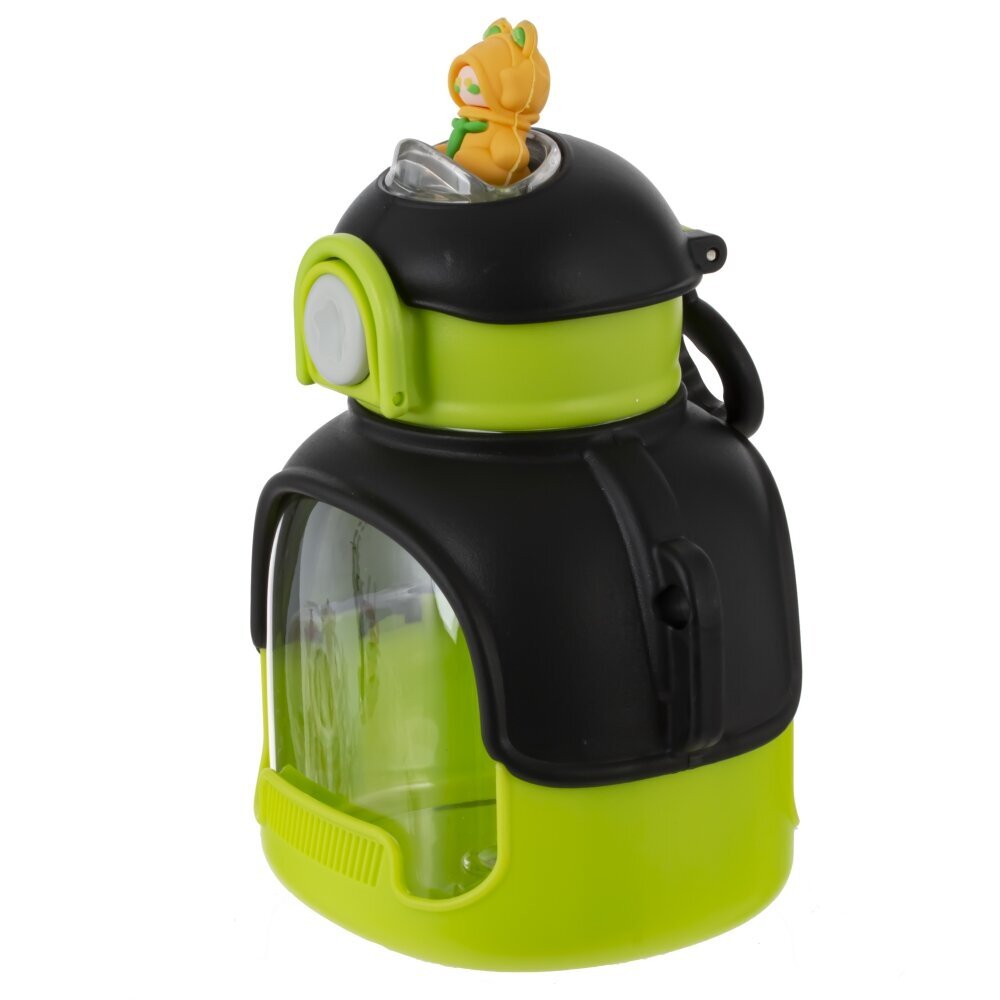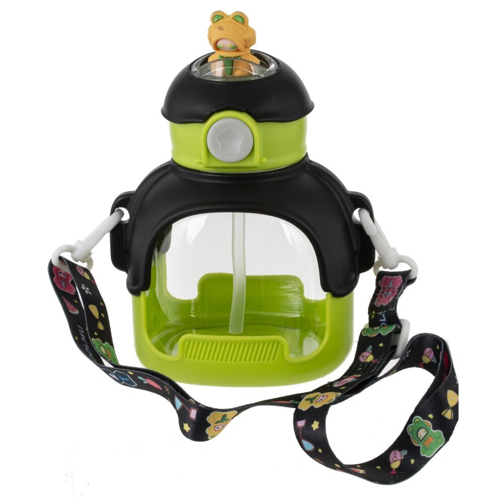 Яркая пластиковая бутылка объемом 700 мл, предназначенная для воды или других напитков. Бутылка выполнена в зеленом и черном цветах, что придаёт ей уникальный и стильный внешний вид. Особенностью данной модели является забавная фигурка лягушки на крышке, которая наверняка привлечет внимание детей и сделает процесс питья более интересным. На крышке предусмотрена удобная кнопка для открытия, а внутри бутылки закреплена трубочка, благодаря которой пить становится комфортнее даже на ходу. Бутылка оснащена прочным ремешком с яркими мультяшными рисунками, который позволяет носить её на плече или через плечо, что особенно удобно для детей в школу, на прогулку или занятия спортом. Герметичная крышка надёжно защищает содержимое от проливания, а сам материал бутылки легко моется и устойчив к ударам. Этот аксессуар станет отличным помощником для поддержания водного баланса в течение дня.