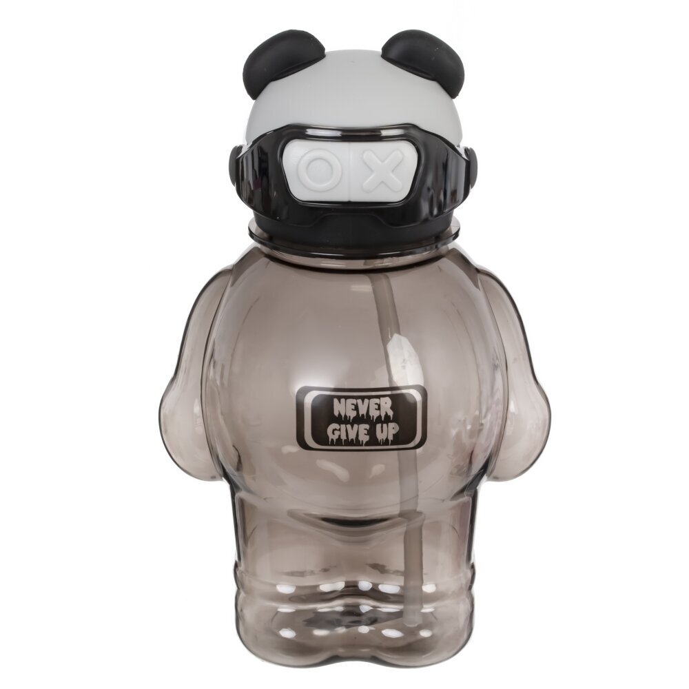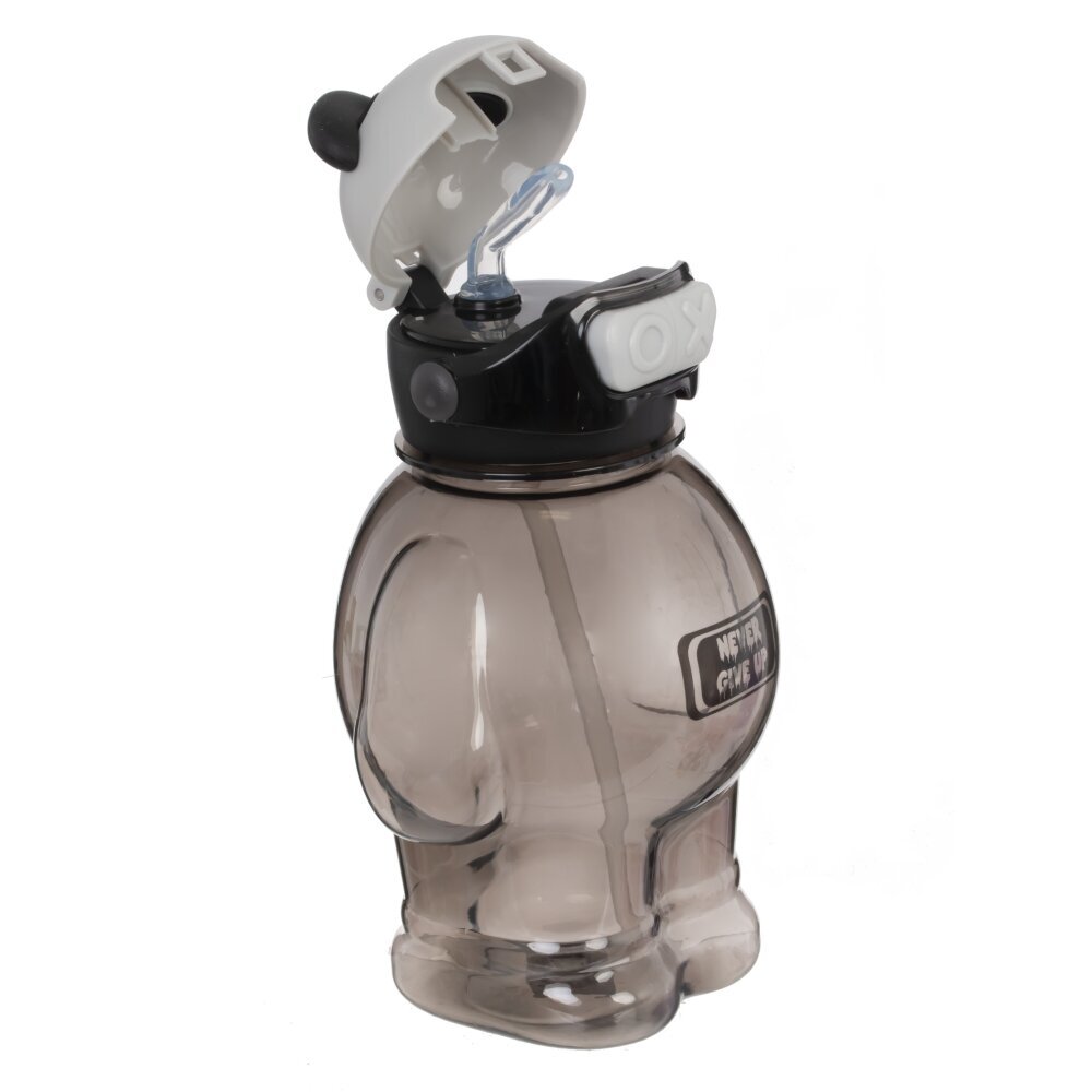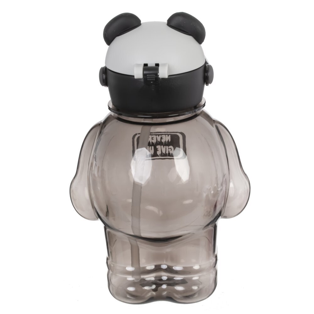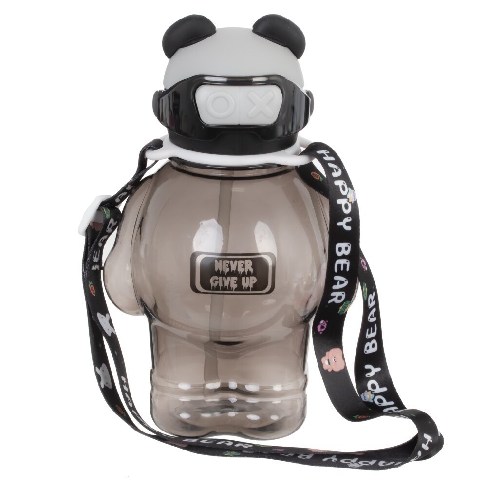 Оригинальная бутылка объемом 850 мл, выполненная в виде милого медведя-панды. Крышка украшена ушками и стилизована под голову панды с черно-белой цветовой гаммой и дополнительно декорирована необычной повязкой, напоминающей очки или маску, что придает изделию особый современный вид. На передней части бутылки размещена яркая надпись "NEVER GIVE UP", напоминающая о необходимости не сдаваться и двигаться к своей цели. В комплекте прилагается удобный ремешок с надписью "HAPPY BEAR" и яркими мультяшными изображениями, за который легко носить бутылку на плече или прикреплять к рюкзаку. Такая бутылка станет отличным стильным аксессуаром для школьников, студентов и всех, кто ведет активный образ жизни. Она подойдет как для воды, так и для других напитков, а веселый дизайн будет поднимать настроение каждый день.