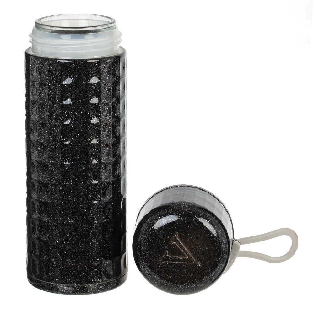 Стильная бутылка для напитков объемом 500 мл, выполненная из прочного стекла с защитной поверхностью из полимерных материалов. Корпус с геометрическим узором, а широкое горлышко удобно для наливания воды, компота, холодного чая или лимонада. Плотная винтовая крышка беспечивает надежную герметичность и не скользит в руках; к ней прикреплён ремешок?петля для удобной переноски. Стекло не впитывает запахи и сохраняет вкус напитков, а полимерная оболочка смягчает удары и делает бутылку менее скользкой. Подходит для работы, учебы, прогулок и поездок. Легко мыть и приятно держать в руках. Современный, практичный аксессуар на каждый день. Представлено в четырех вариантах.