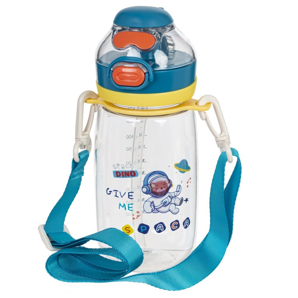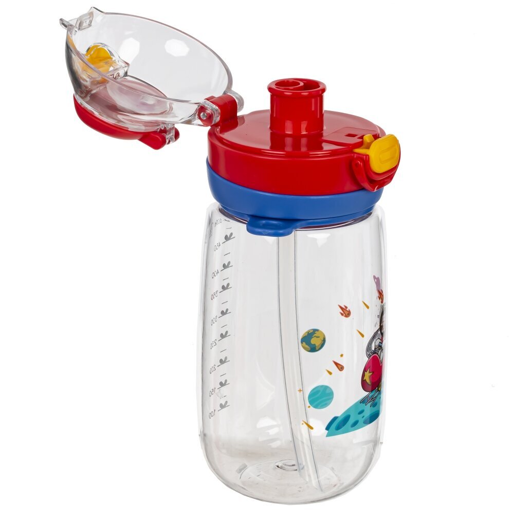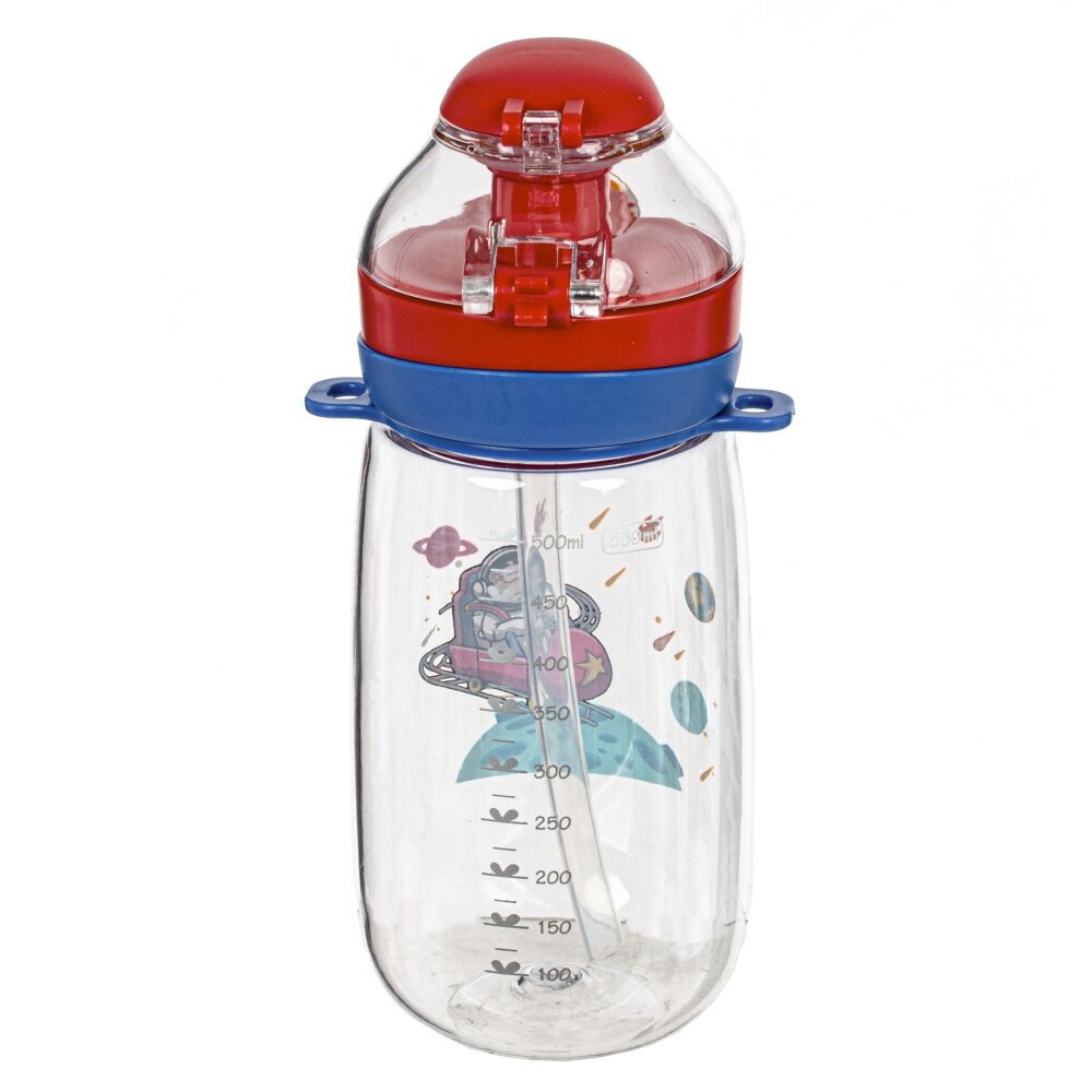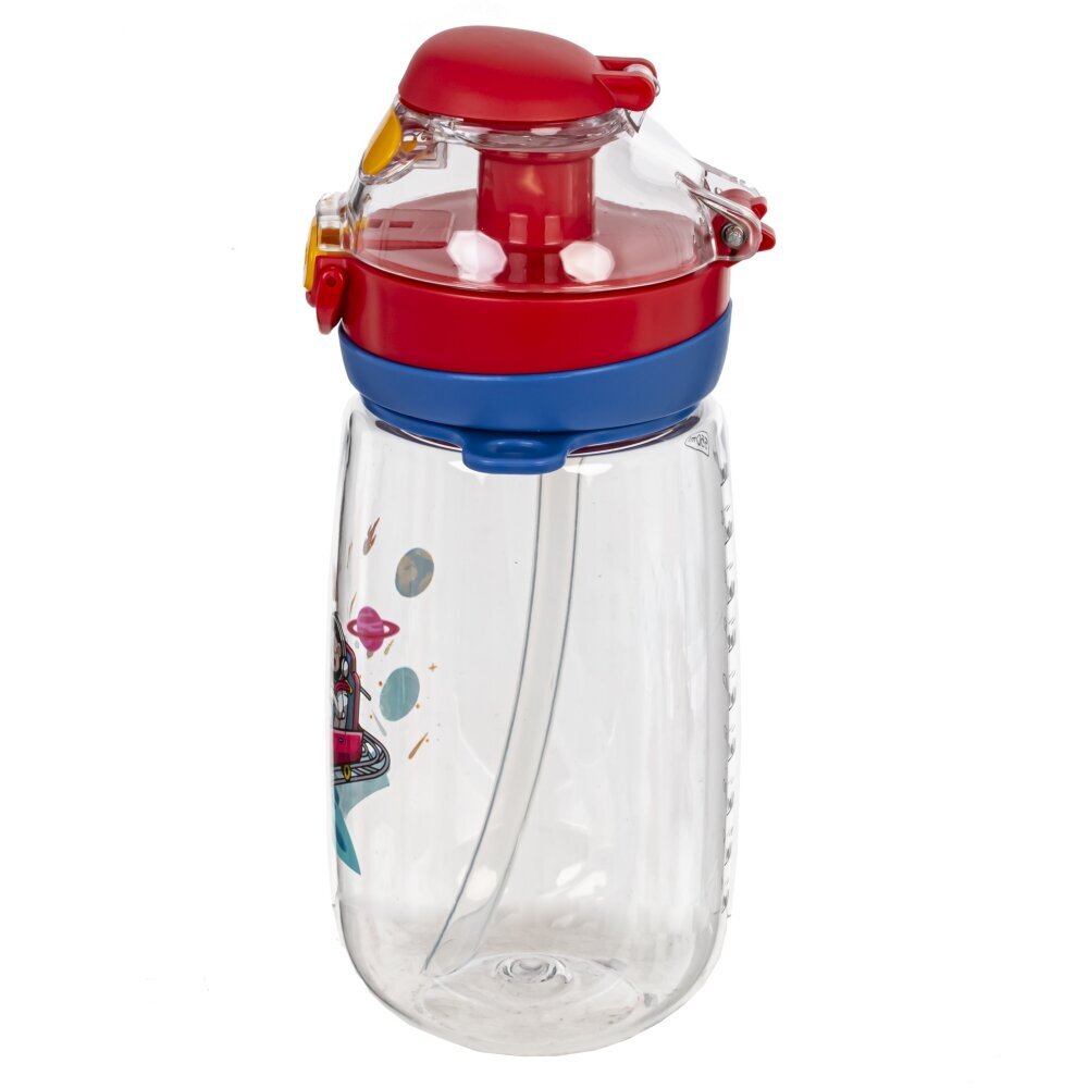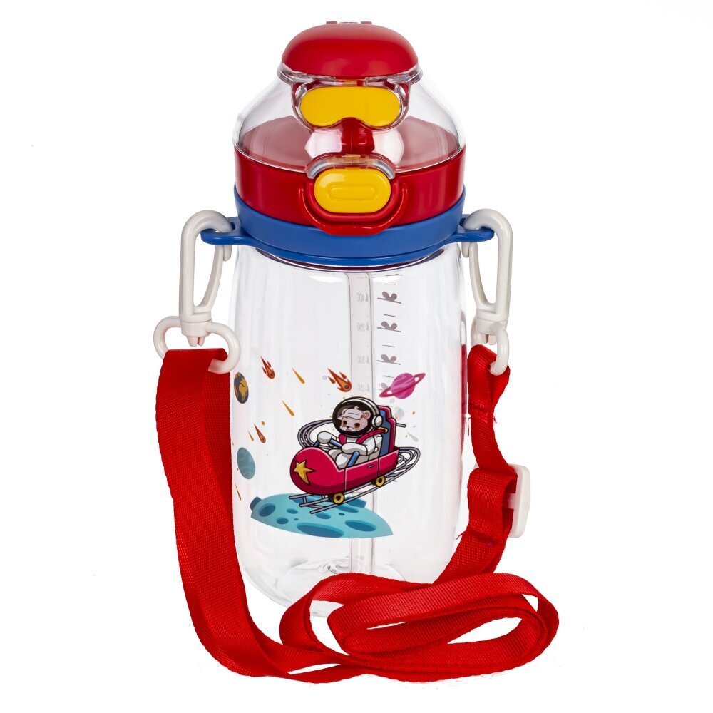 Бутылка объемом 550 мл, выполненная из прочного и безопасного полимерного материала. Она оснащена удобной крышкой с клапаном для питья и прозрачной защитной крышкой, что обеспечивает гигиеничность использования. На бутылке имеется яркий и привлекательный рисунок, который делает изделие особенно интересным для детей. На одной из сторон нанесена мерная шкала, позволяющая контролировать количество жидкости внутри. Бутылка снабжена ремешком для переноски, что делает её удобной для повседневного использования в школе, на прогулке или во время занятий спортом. Эргономичная форма и легкий вес обеспечивают комфортное хранение и простоту транспортировки. Прочная конструкция защищает бутылку от повреждений при падении, а материалы безопасны для здоровья и не впитывают запахи. Представлено в четырех вариантах.