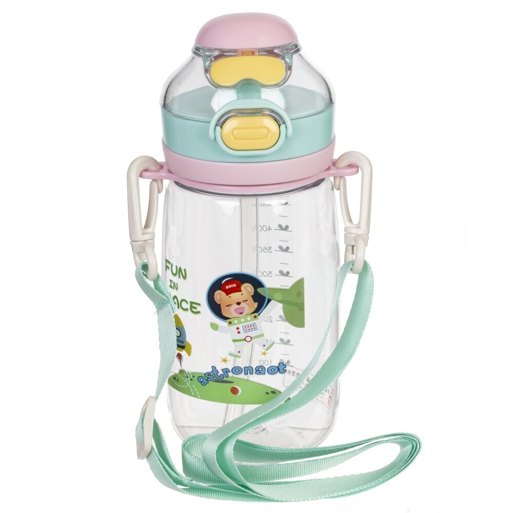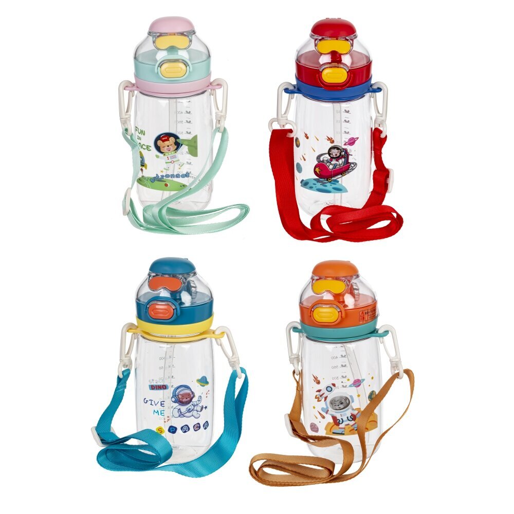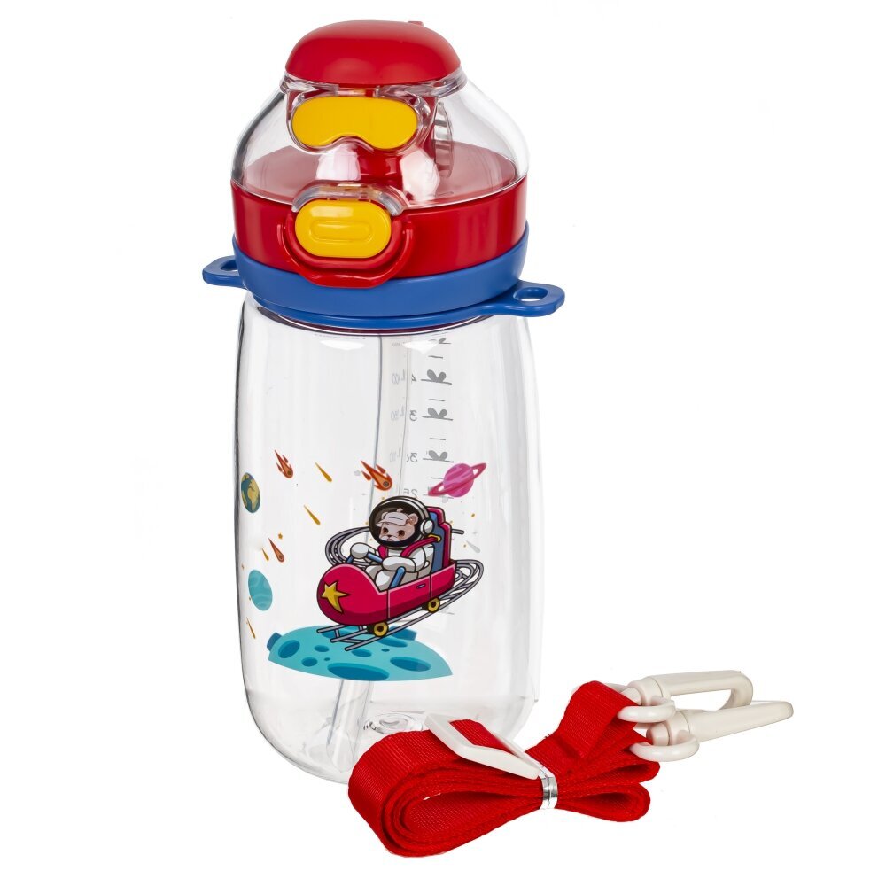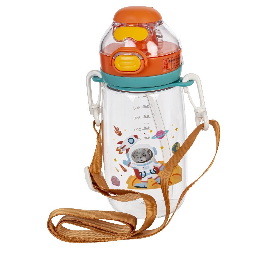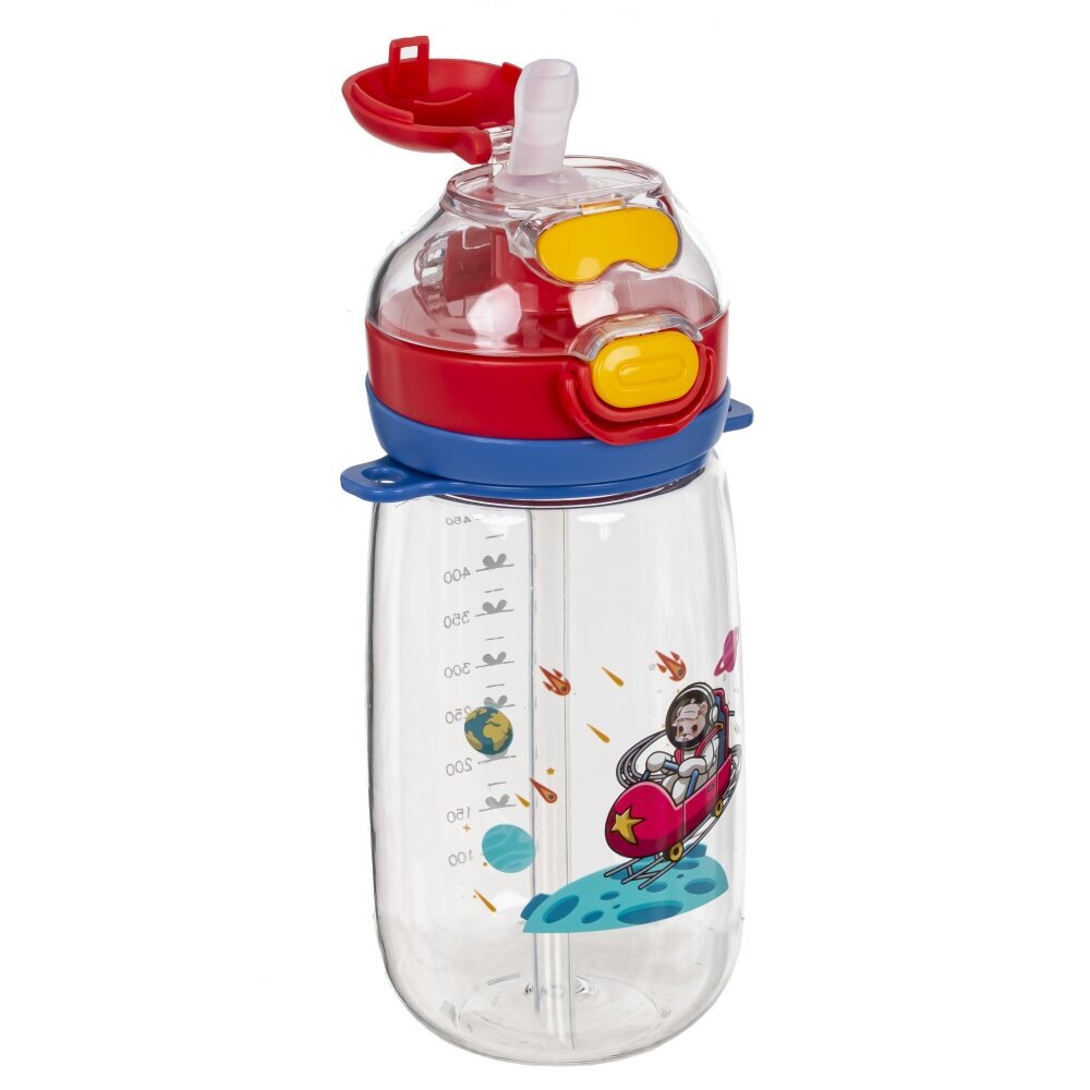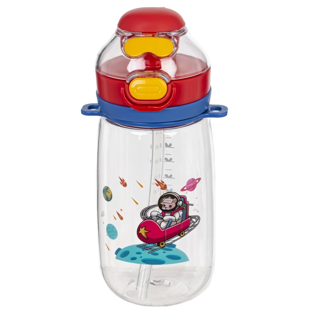 Бутылка объемом 550 мл, выполненная из прочного и безопасного полимерного материала. Она оснащена удобной крышкой с клапаном для питья и прозрачной защитной крышкой, что обеспечивает гигиеничность использования. На бутылке имеется яркий и привлекательный рисунок, который делает изделие особенно интересным для детей. На одной из сторон нанесена мерная шкала, позволяющая контролировать количество жидкости внутри. Бутылка снабжена ремешком для переноски, что делает её удобной для повседневного использования в школе, на прогулке или во время занятий спортом. Эргономичная форма и легкий вес обеспечивают комфортное хранение и простоту транспортировки. Прочная конструкция защищает бутылку от повреждений при падении, а материалы безопасны для здоровья и не впитывают запахи. Представлено в четырех вариантах.
