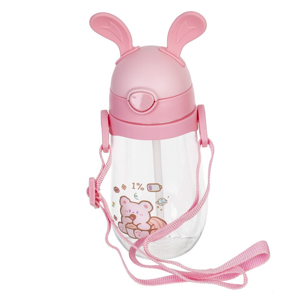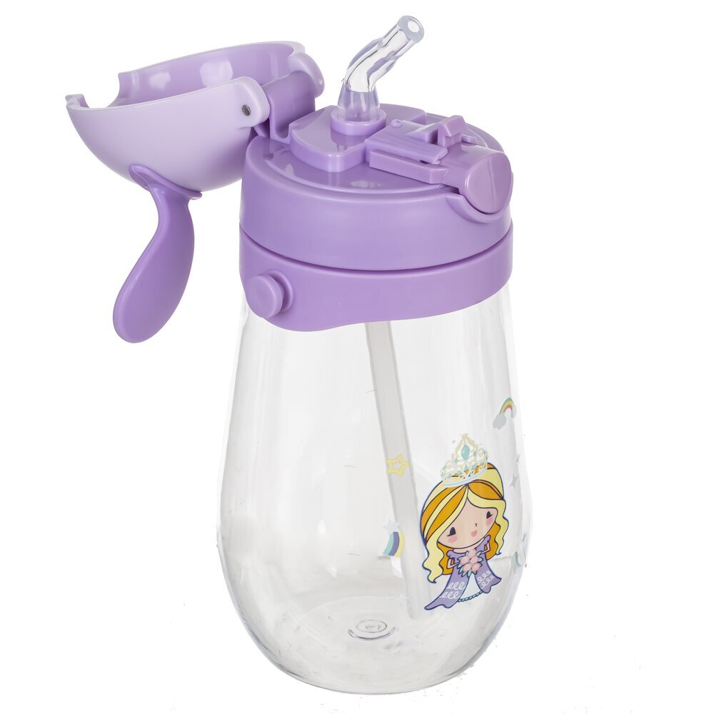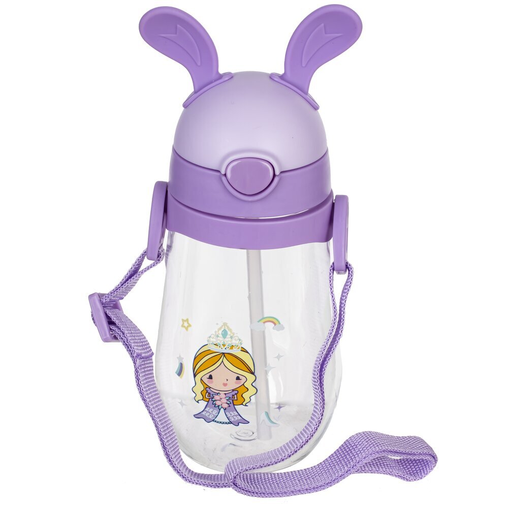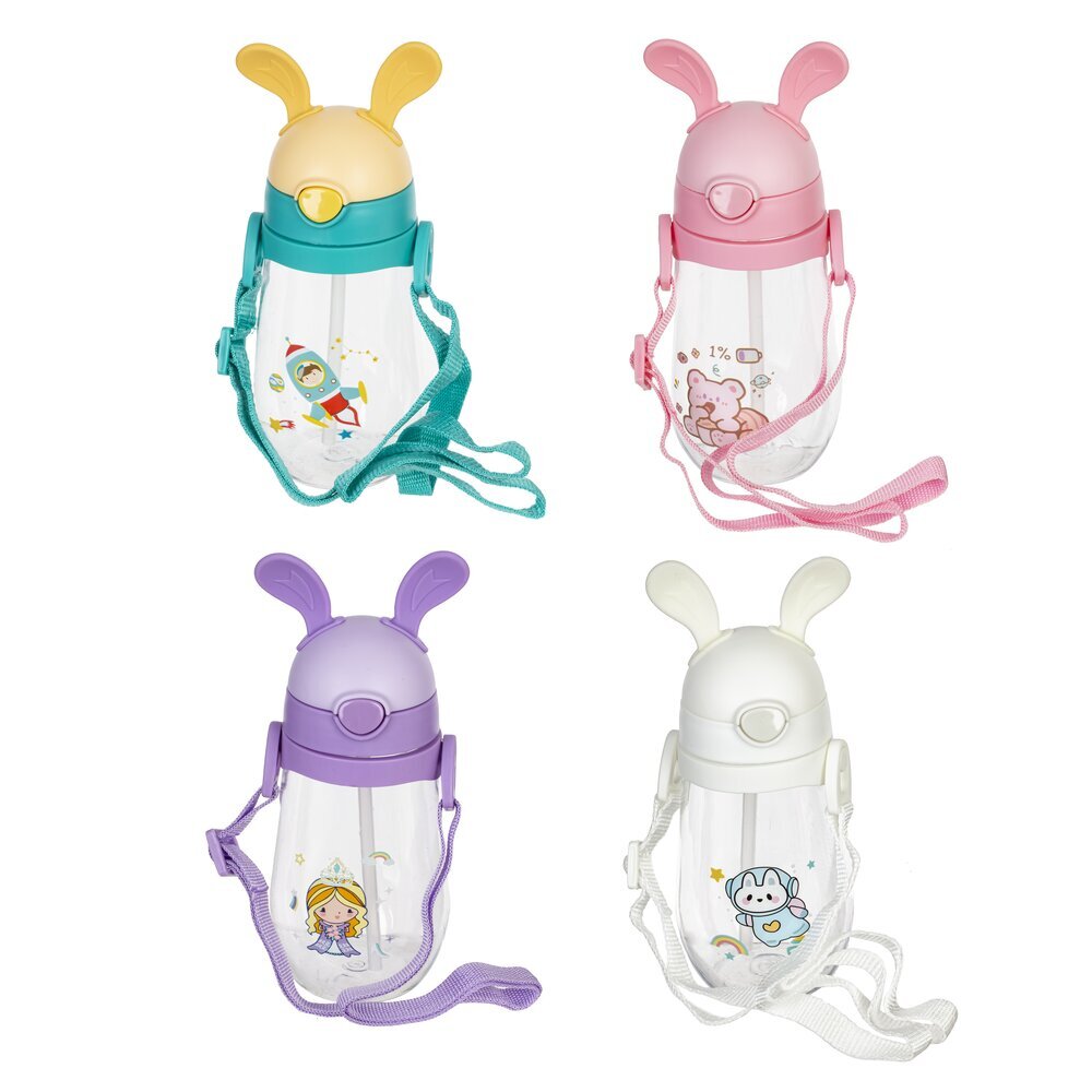 Яркая детская бутылка объёмом 450 мл, изготовленная из высококачественных полимерных материалов. Особенностью дизайна является крышка с декоративными "ушками", что делает бутылку особенно привлекательной для малышей. На прозрачных стенках изделия изображены милые мультяшные персонажи. Бутылка снабжена удобной лямкой в тон крышке, благодаря чему её легко носить с собой на прогулку, в школу или детский сад. Надёжная защёлка на крышке предотвращает случайное проливание напитков. Эта бутылка идеально подойдёт для воды или других напитков, станет отличным аксессуаром для ребёнка и поможет воспитать полезную привычку пить воду регулярно. Представлено в четырех вариантах.