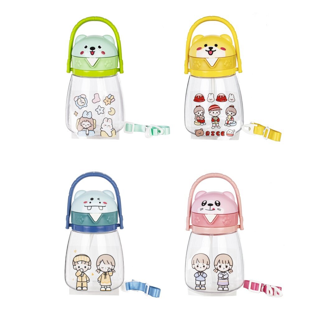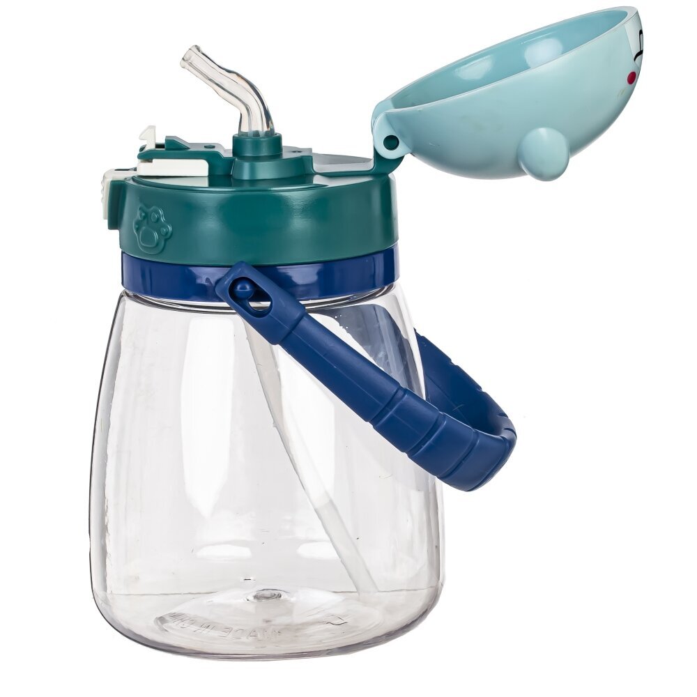 Бутылка объёмом 700 мл, выполненная из качественных полимерных материалов. Она имеет прозрачный корпус с изображением милых мультяшных персонажей, что делает её особенно привлекательной для детей. Крышка оформлена в виде мордочки панды , что придаёт бутылке ещё более игривый вид. Эргономичная ручка и удобный ремешок позволяют ребёнку легко носить бутылку с собой на прогулку, в школу или детский сад. Такая бутылочка надёжно защищена от протеканий и очень проста в уходе. Благодаря своему дизайну и функциональности она станет отличным аксессуаром для ежедневного использования, приучая ребёнка к самостоятельности и делая процесс питья более интересным и весёлым. Представлено в четырех вариантах.