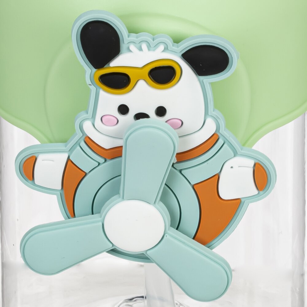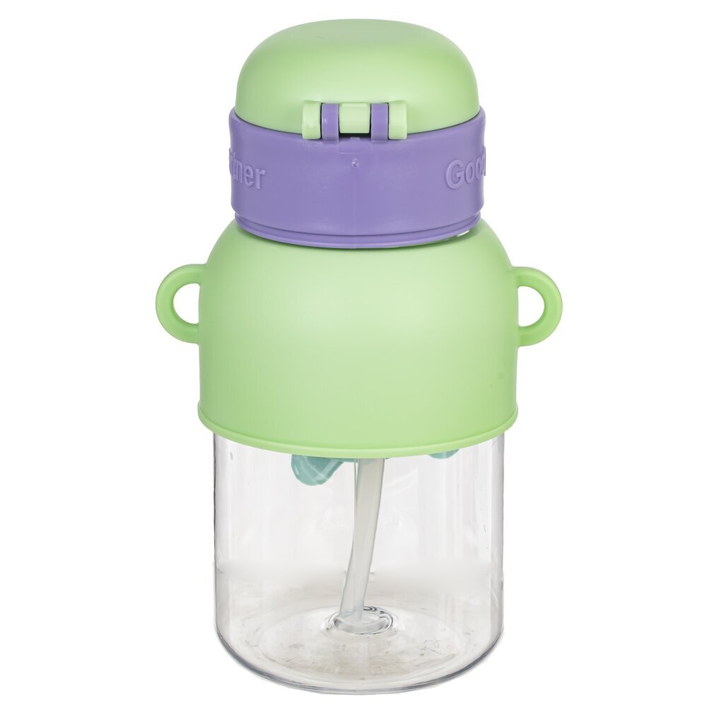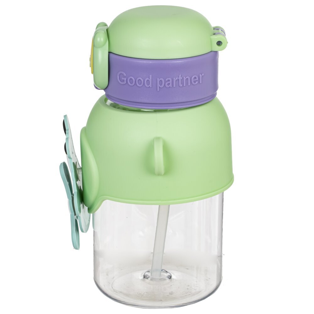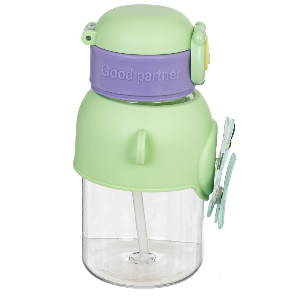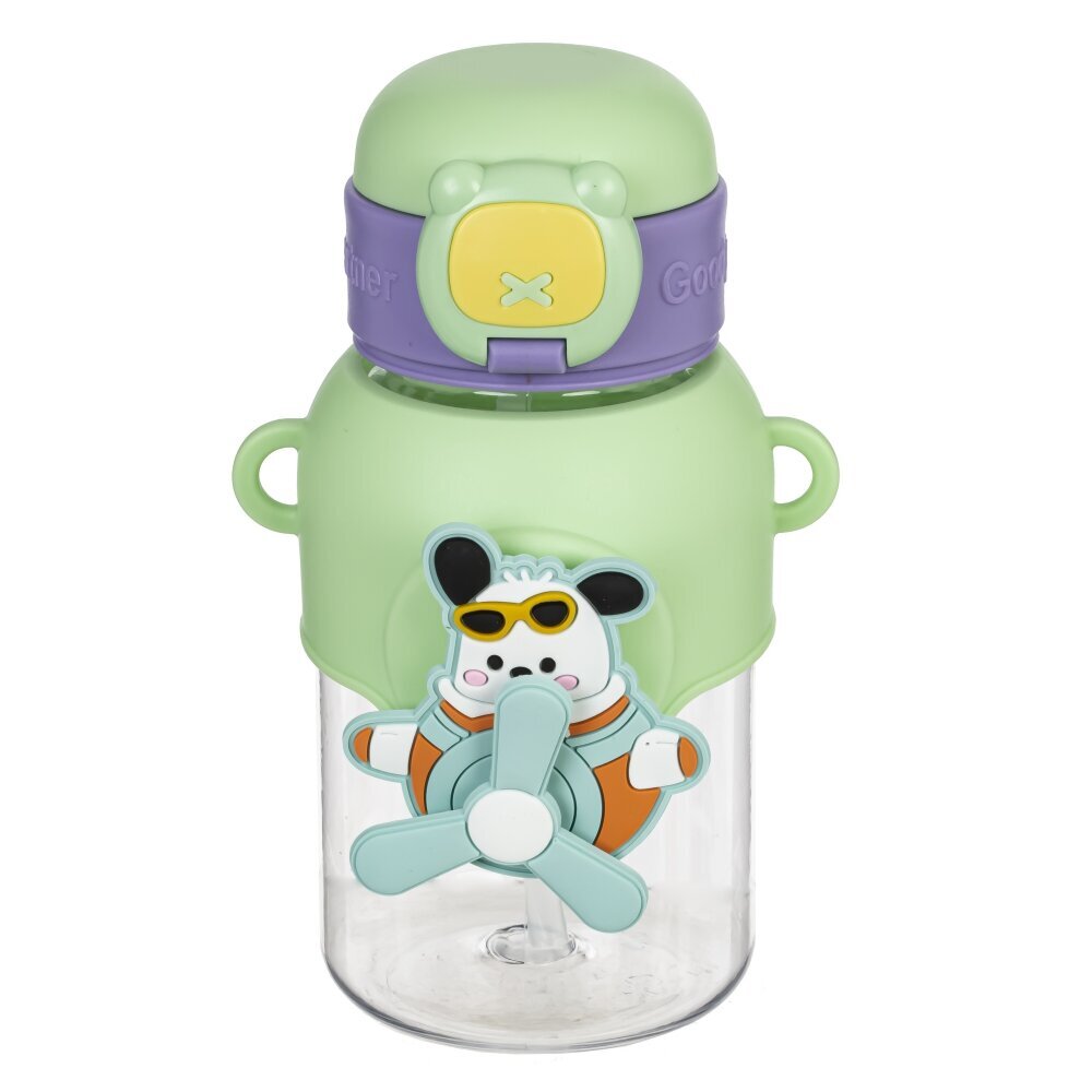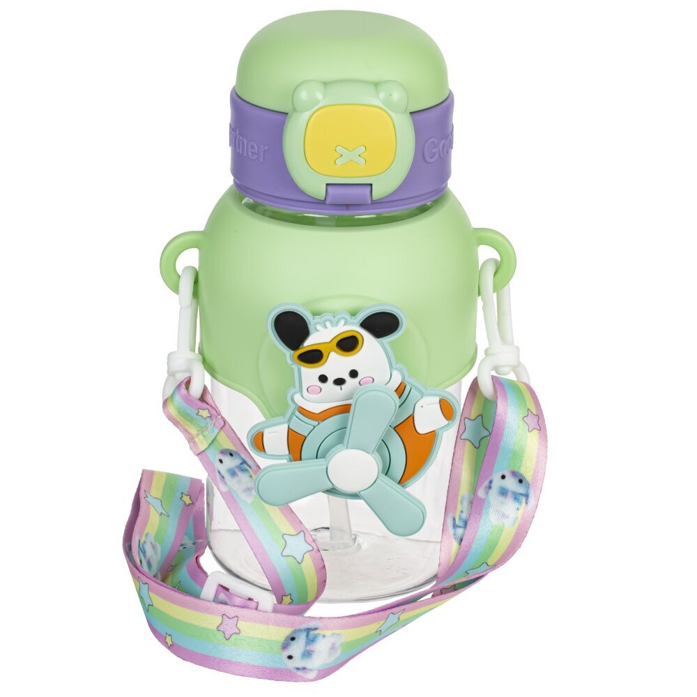 Перед вами яркая и оригинальная бутылка объемом 550 мл, идеально подходящая для детей. Верхняя часть бутылки выполнена в нежном светло-зеленом цвете с контрастной фиолетово-желтой крышкой, которая украшена милым медвежонком. На центральной части корпуса изображён забавный медвежонок в очках, сидящий в вертолёте, что добавляет изделию игривости и привлекает внимание малышей. Особенностью бутылки является удобный ремешок с радужным рисунком — его можно носить на плече, что особенно удобно для прогулок, школы или спортивных занятий. Бутылка изготовлена из прочного и безопасного пластика, что обеспечивает долгий срок эксплуатации и легкость в уходе. Благодаря интересному дизайну эта бутылка не только поможет ребенку соблюдать питьевой режим, но и поднимет ему настроение.