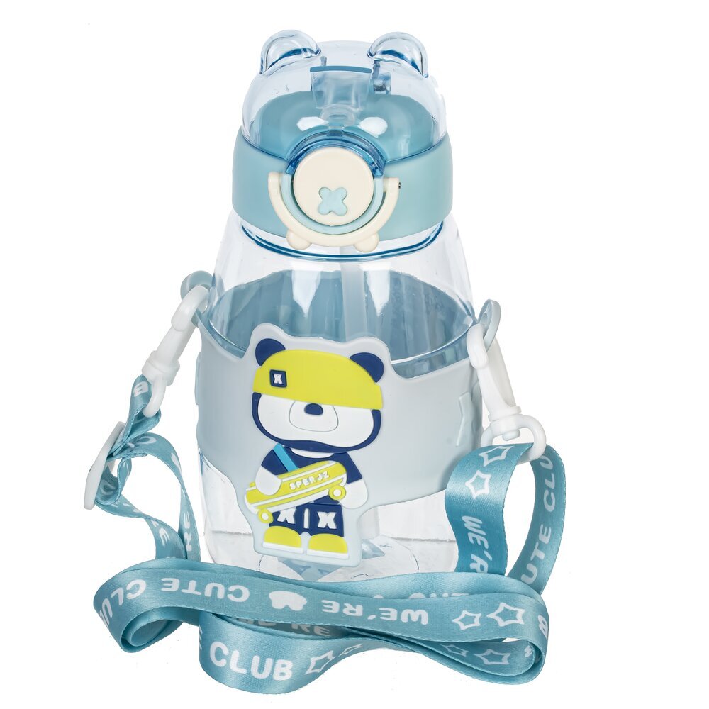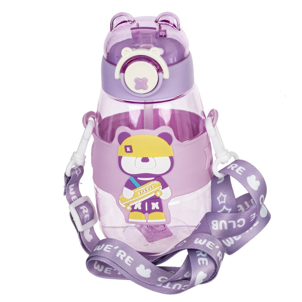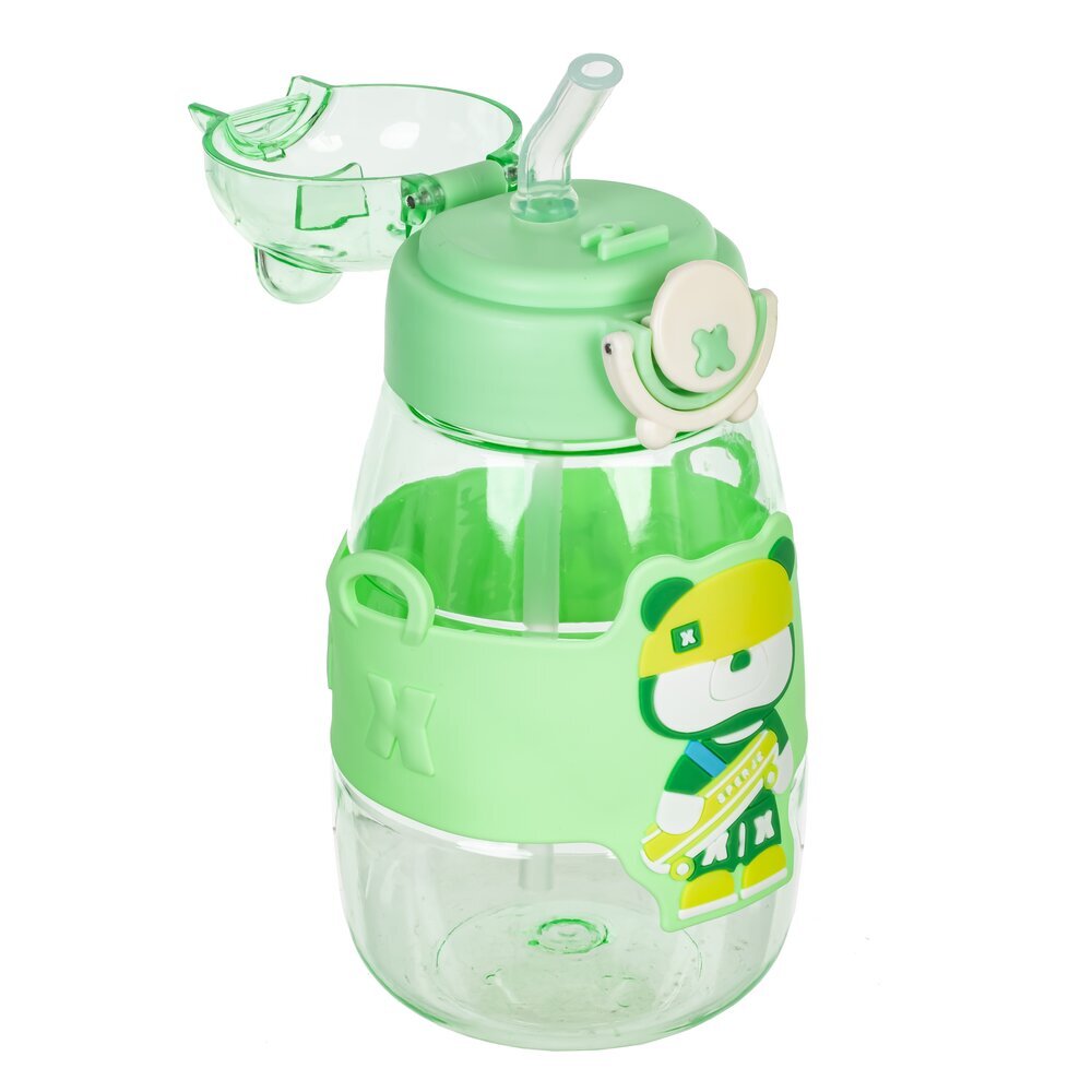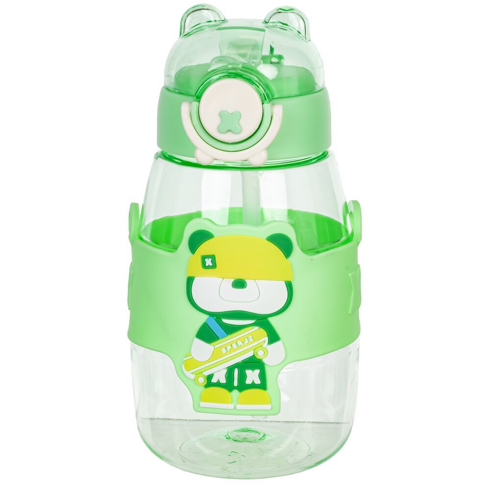 Детская бутылка объёмом 550 мл. Она выполнена из прозрачного пластика с цветными элементами декора. Верхняя часть бутылки оснащена удобной крышкой с откидным механизмом, а также трубочкой для питья, что делает её идеальной для активных детей. На корпусе бутылки имеется силиконовая накладка с милым изображением медвежонка в шлеме и спортивной одежде, что непременно понравится малышу. Удобные боковые ручки способствуют комфортному удержанию бутылки маленькими руками. Эта бутылка отлично подойдёт для воды, сока или других напитков, а современный дизайн делает её ярким и функциональным аксессуаром для школы, прогулок или путешествий. Представлено в четырех вариантах.