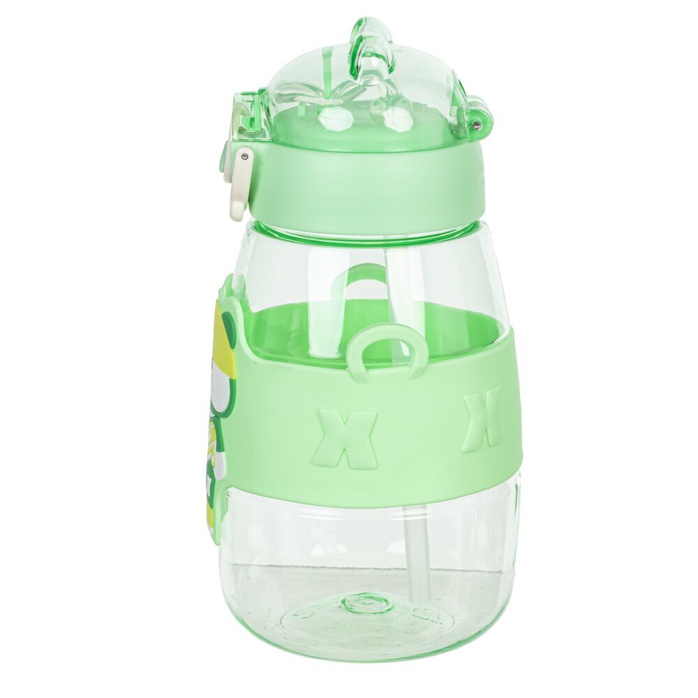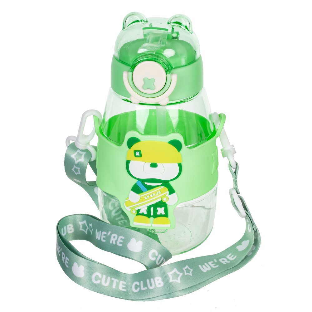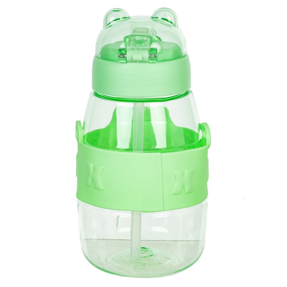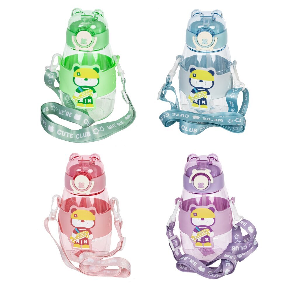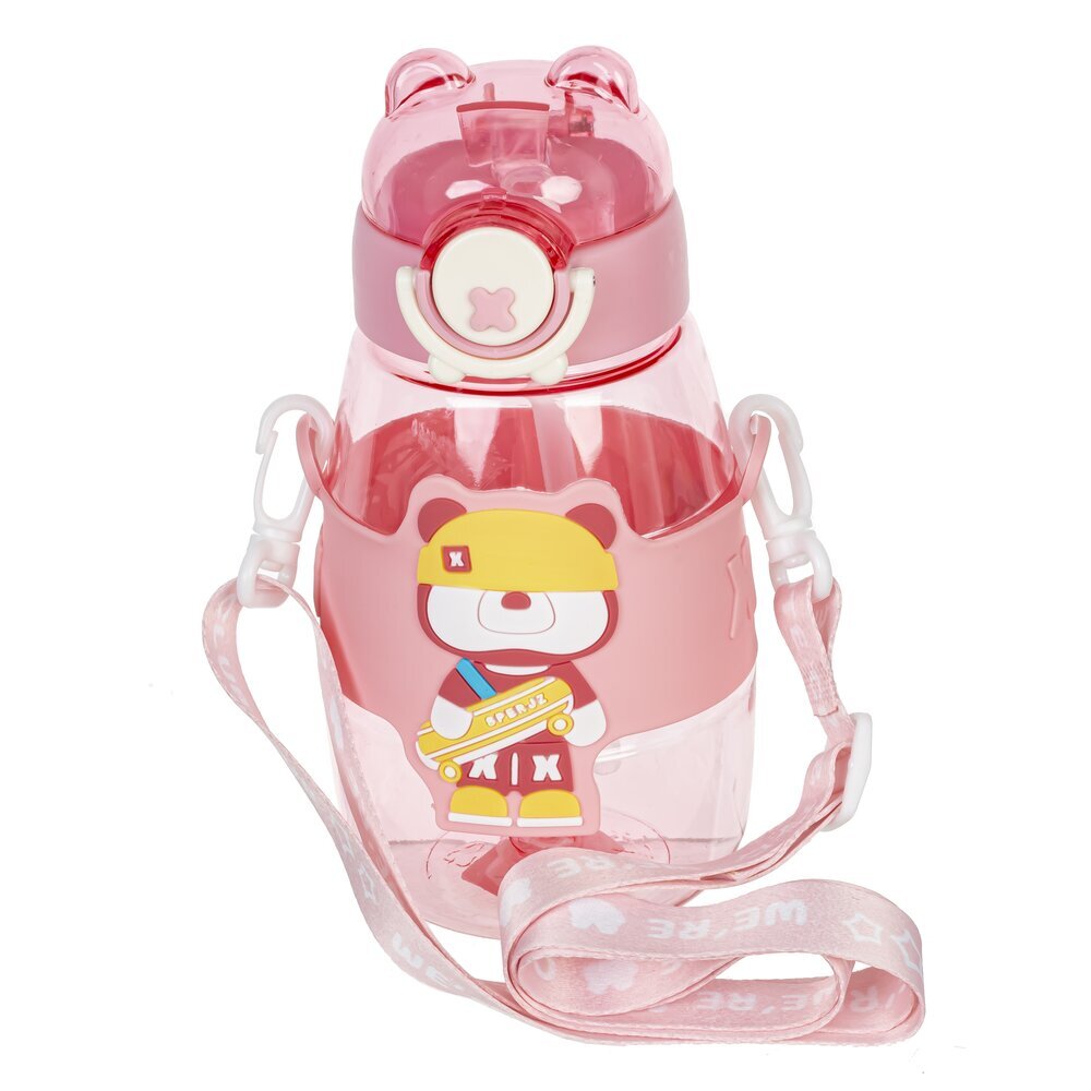 Детская бутылка объёмом 550 мл. Она выполнена из прозрачного пластика с цветными элементами декора. Верхняя часть бутылки оснащена удобной крышкой с откидным механизмом, а также трубочкой для питья, что делает её идеальной для активных детей. На корпусе бутылки имеется силиконовая накладка с милым изображением медвежонка в шлеме и спортивной одежде, что непременно понравится малышу. Удобные боковые ручки способствуют комфортному удержанию бутылки маленькими руками. Эта бутылка отлично подойдёт для воды, сока или других напитков, а современный дизайн делает её ярким и функциональным аксессуаром для школы, прогулок или путешествий. Представлено в четырех вариантах.