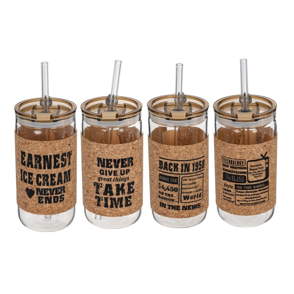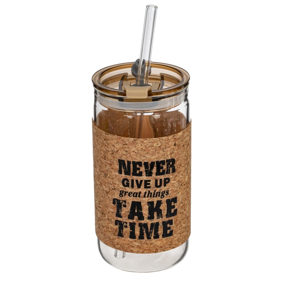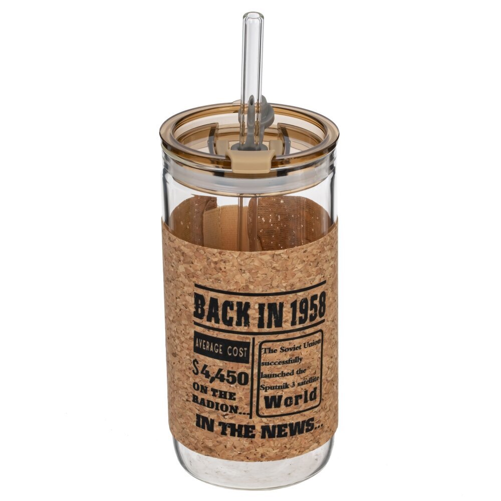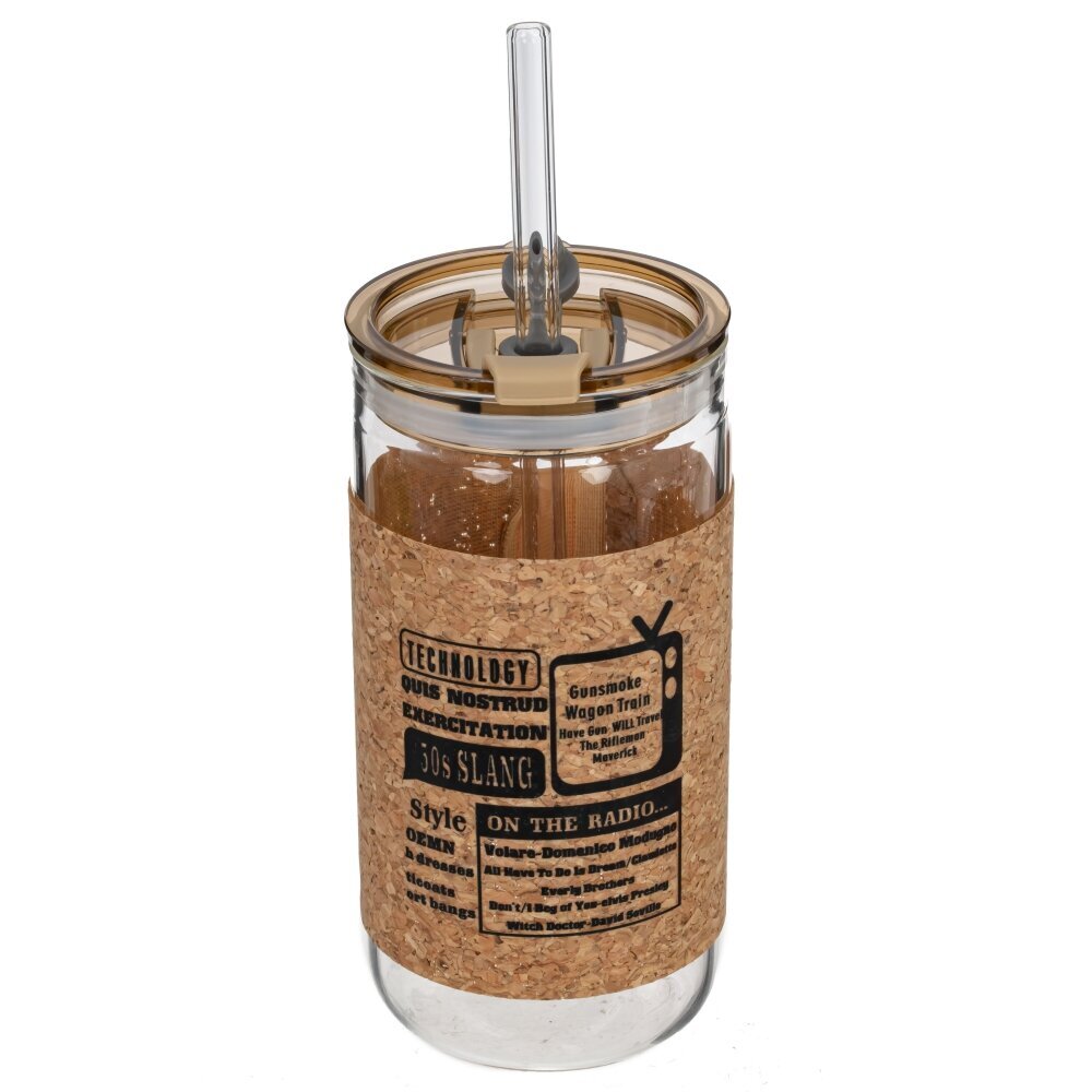 Стильная бутылка с трубочкой объемом 410 мл, выполненная из прозрачного стекла и полимерных материалов. Полимерная крышка с центральным отверстием и уплотнением надежно удерживает многоразовую трубочку и снижает риск брызг. На корпусе — декоративная пробковая манжета с крупным принтом , которая улучшает хват и придает изделию характерный вид. Цилиндрическая форма удобна в руке, стекло не впитывает запахи и легко очищается. Идеальна для воды, лимонадов, смузи, холодного чая или кофе со льдом — дома, в офисе и в поездках. Рекомендуется ручная мойка, избегать кипятка и сильных ударов. Многоразовое решение для ежедневного использования. Представлено в четырех вариантах.