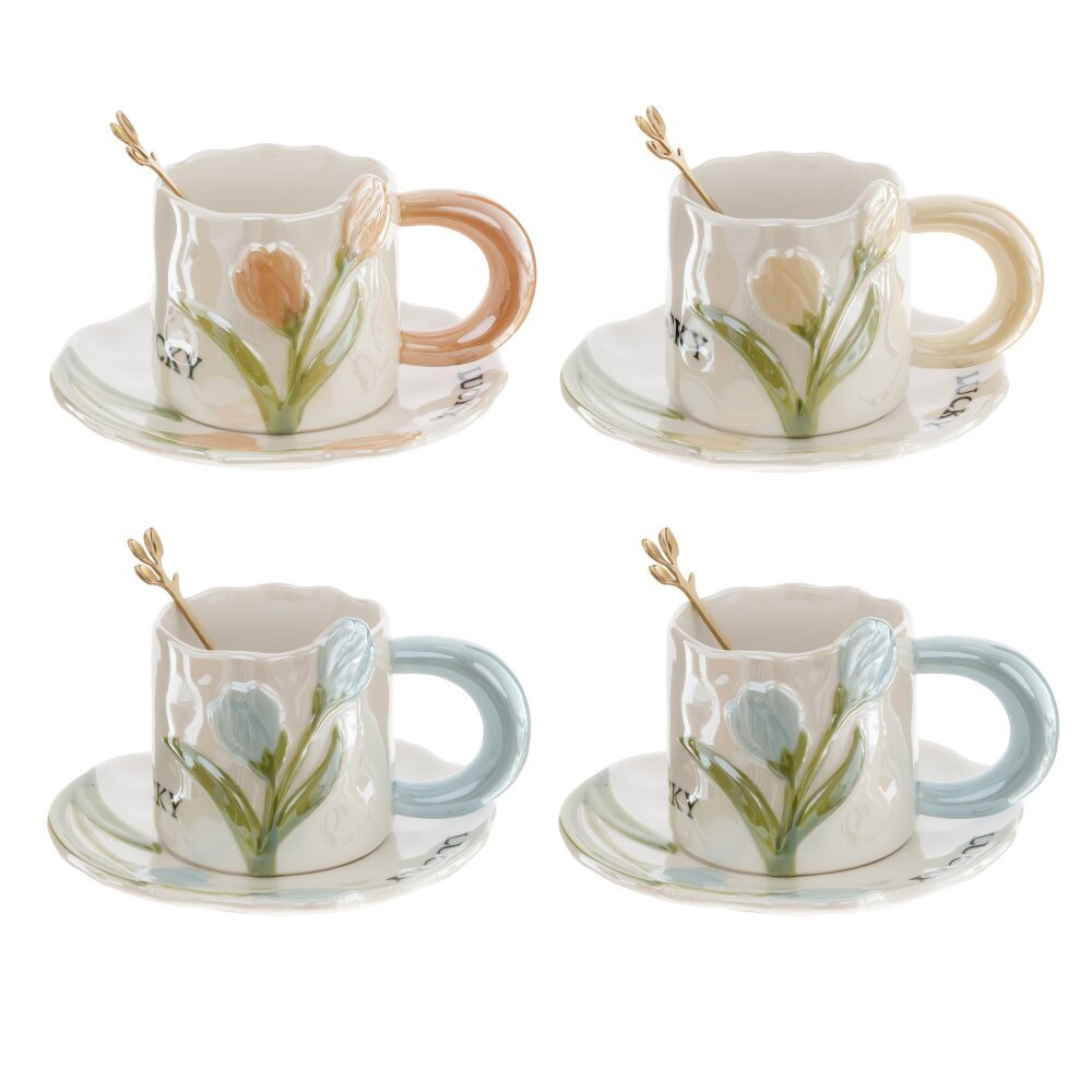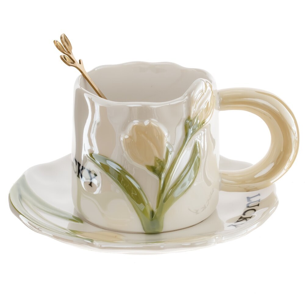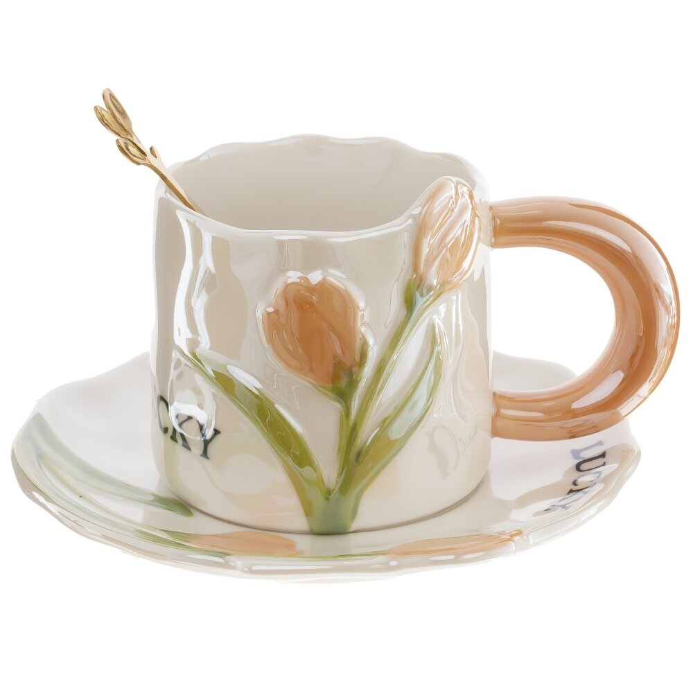 Эта изысканная чашка с блюдцем и ложкой станет настоящим украшением вашего чайного или кофейного сервиза. Изготовленная из качественного фарфора, она сочетает в себе не только прочность, но и элегантный внешний вид. Объем в 240 мл идеально подходит для подачи чая, кофе или других горячих напитков, что делает её универсальным аксессуаром для любого времени суток. Рельефный цветочный декор добавляет нотку утонченности и романтики. Такой элемент декора не только радует глаз, но и подчеркивает ваш изысканный вкус. В комплекте с чашкой идет металлическая ложка, которая гармонично вписывается в общий стиль и практична в использовании. Чашка доступна в четырех различных вариантах, что дает возможность выбрать именно тот, который подходит вам или вашим близким.