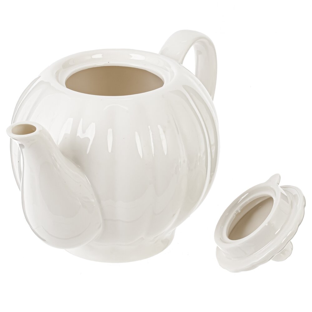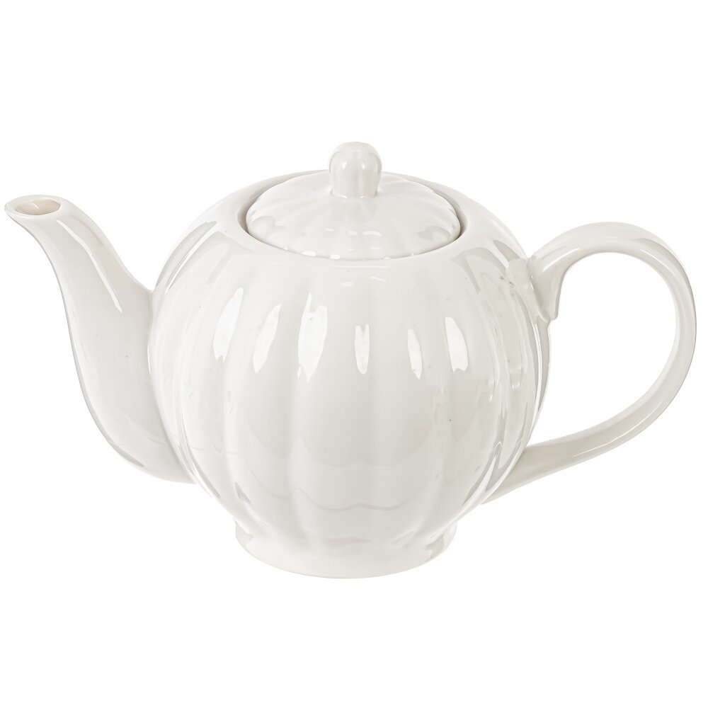 Элегантный фарфоровый чайник объёмом 850 мл создан для уютных чаепитий в кругу семьи и друзей. Классическая округлая форма с мягкими вертикальными рельефами подчёркивает изысканный дизайн и делает чайник украшением любого стола. Гладкая белоснежная глазурь легко очищается и надолго сохраняет безупречный внешний вид. Удобная эргономичная ручка обеспечивает надёжный захват, а изогнутый носик даёт аккуратную, ровную струю без подтёков. Плотно прилегающая крышка с удобной ручкой препятствует быстрому остыванию напитка. Объёма 850 мл достаточно для заваривания чая на 3–4 персоны. Подойдёт для ежедневного использования дома, в офисе или в кафе, а также станет приятным и практичным подарком для ценителей классического стиля и традиций чаепития.