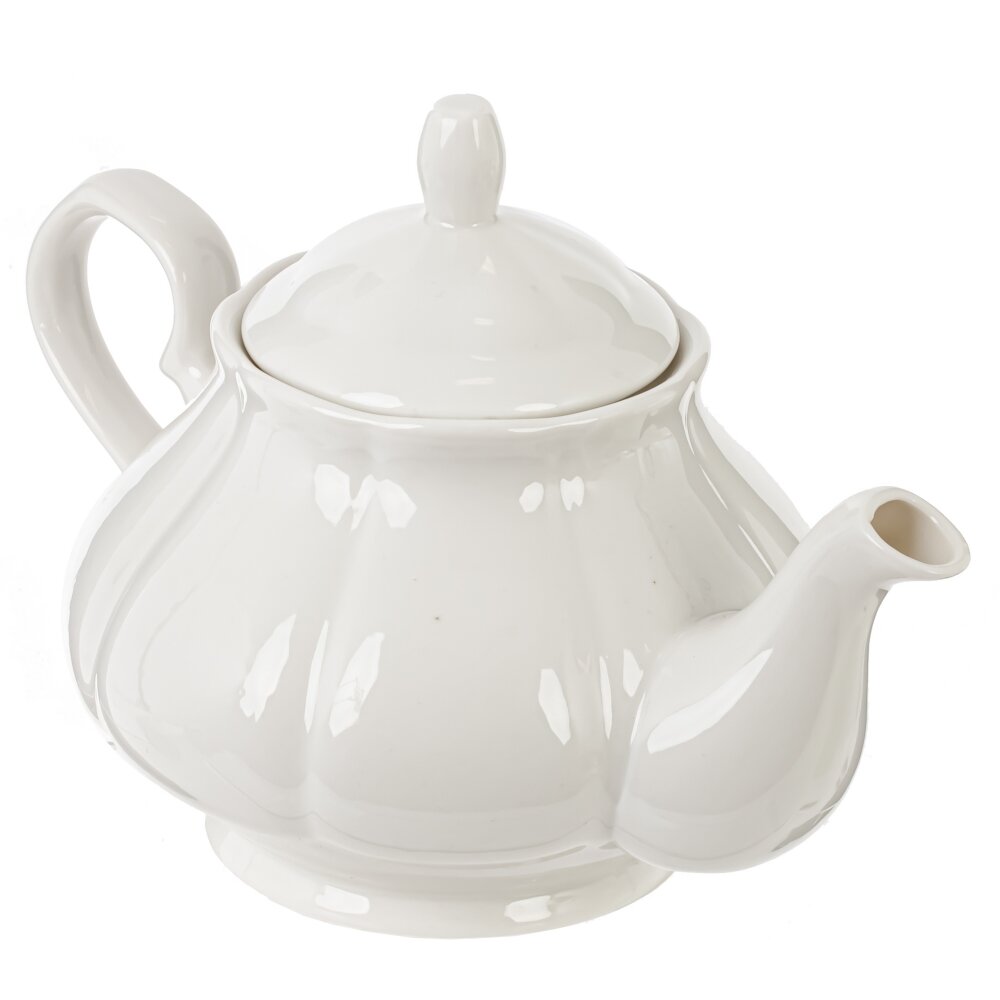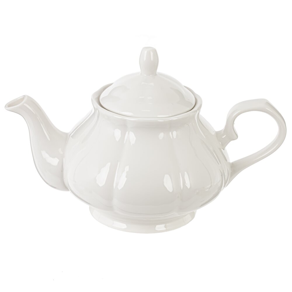 Элегантный фарфоровый чайник объёмом 850 мл создан для уютных чаепитий в кругу семьи и друзей. Классическая округлая форма с мягкими вертикальными рельефами подчёркивает изысканный дизайн и делает чайник украшением любого стола. Гладкая белоснежная глазурь легко очищается и надолго сохраняет безупречный внешний вид. Удобная эргономичная ручка обеспечивает надёжный захват, а изогнутый носик даёт аккуратную, ровную струю без подтёков. Плотно прилегающая крышка с удобной ручкой препятствует быстрому остыванию напитка. Объёма 850 мл достаточно для заваривания чая на 3–4 персоны. Подойдёт для ежедневного использования дома, в офисе или в кафе, а также станет приятным и практичным подарком для ценителей классического стиля и традиций чаепития.
