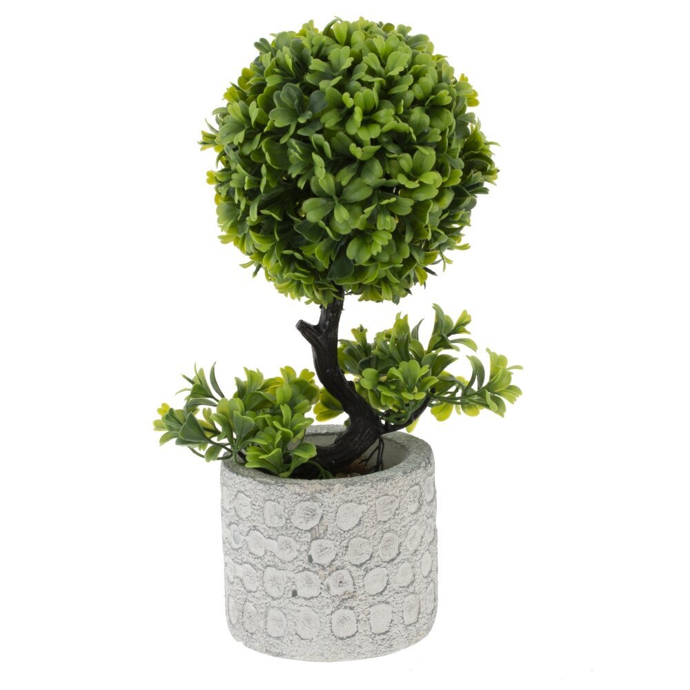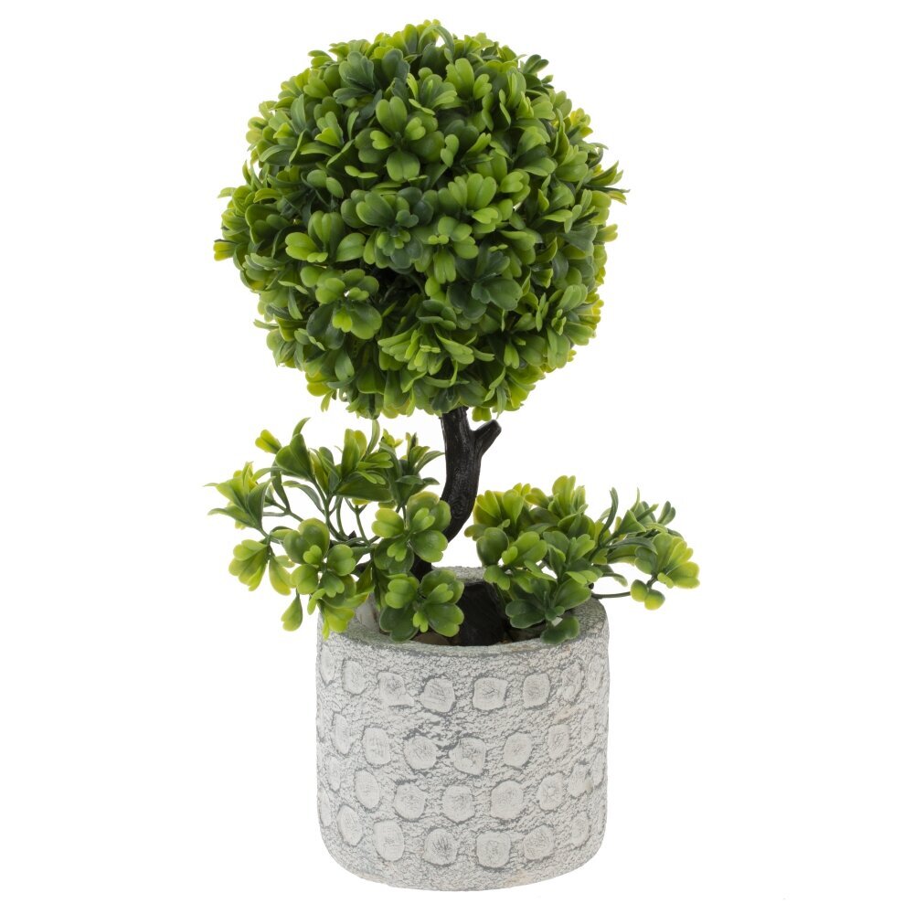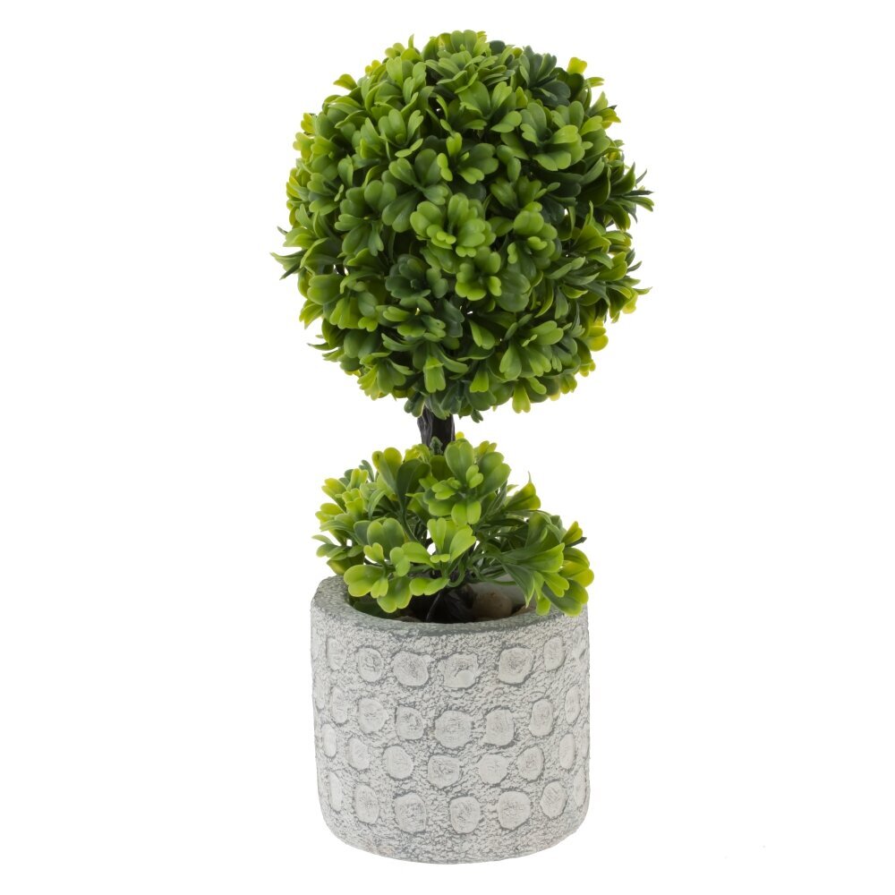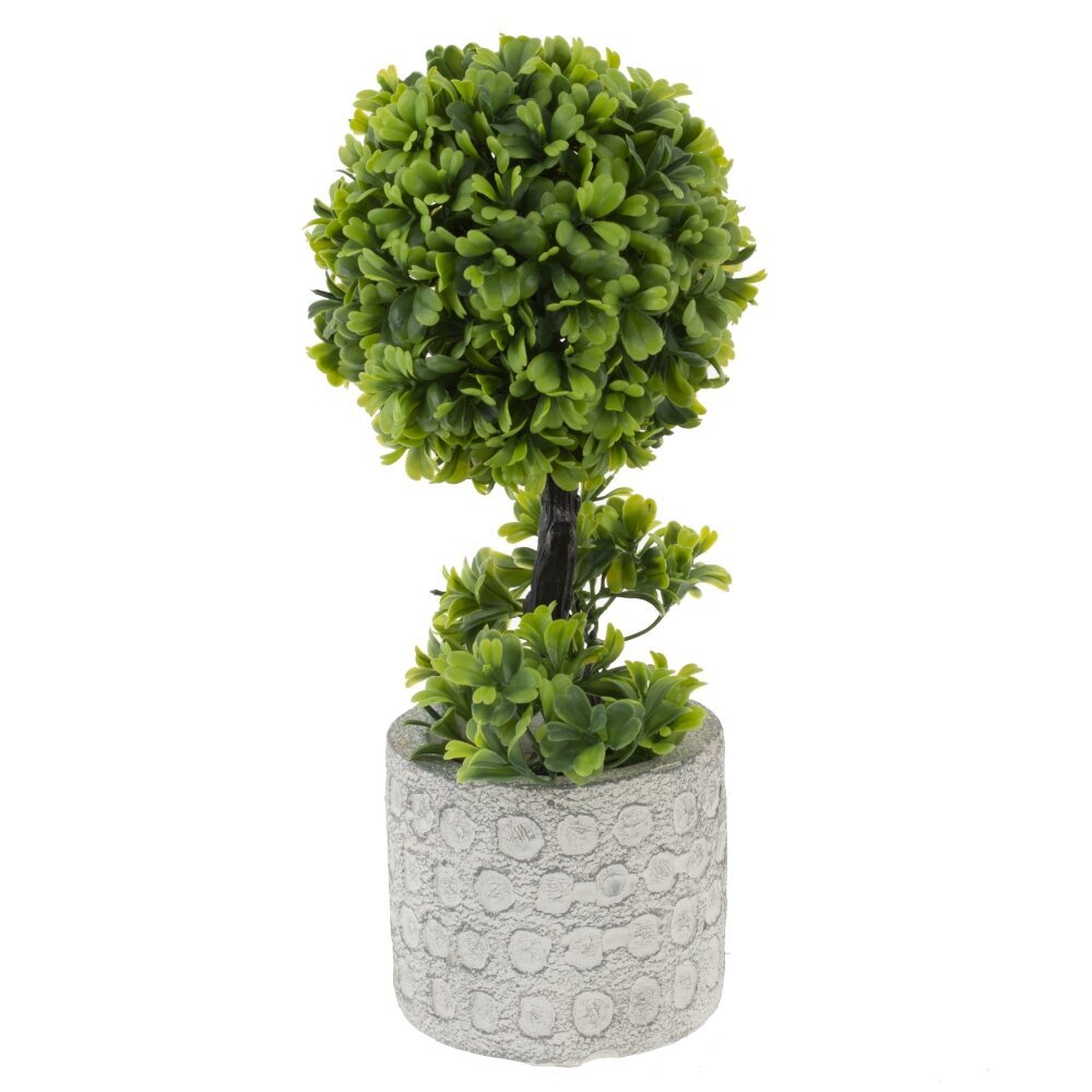 Искусственное декоративное дерево в лаконичном кашпо из магнезии. Пышная крона-«шар» из полимерных листьев разных оттенков зелёного выглядит натурально, ствол фактурный, у основания — дополнительная зелень. Серое кашпо с рельефным узором «под камень» устойчиво и гармонично сочетается с листвой. Изготовлено из прочной магнезии и качественных полимерных материалов. Не требует полива, пересадки и особого ухода — достаточно периодически протирать от пыли. Компактный декор для стола, подоконника, полки, офиса или кафе; уместен в интерьерах сканди, минимализм, эко и лофт. Долговечный и опрятный акцент, добавляющий свежесть без хлопот.