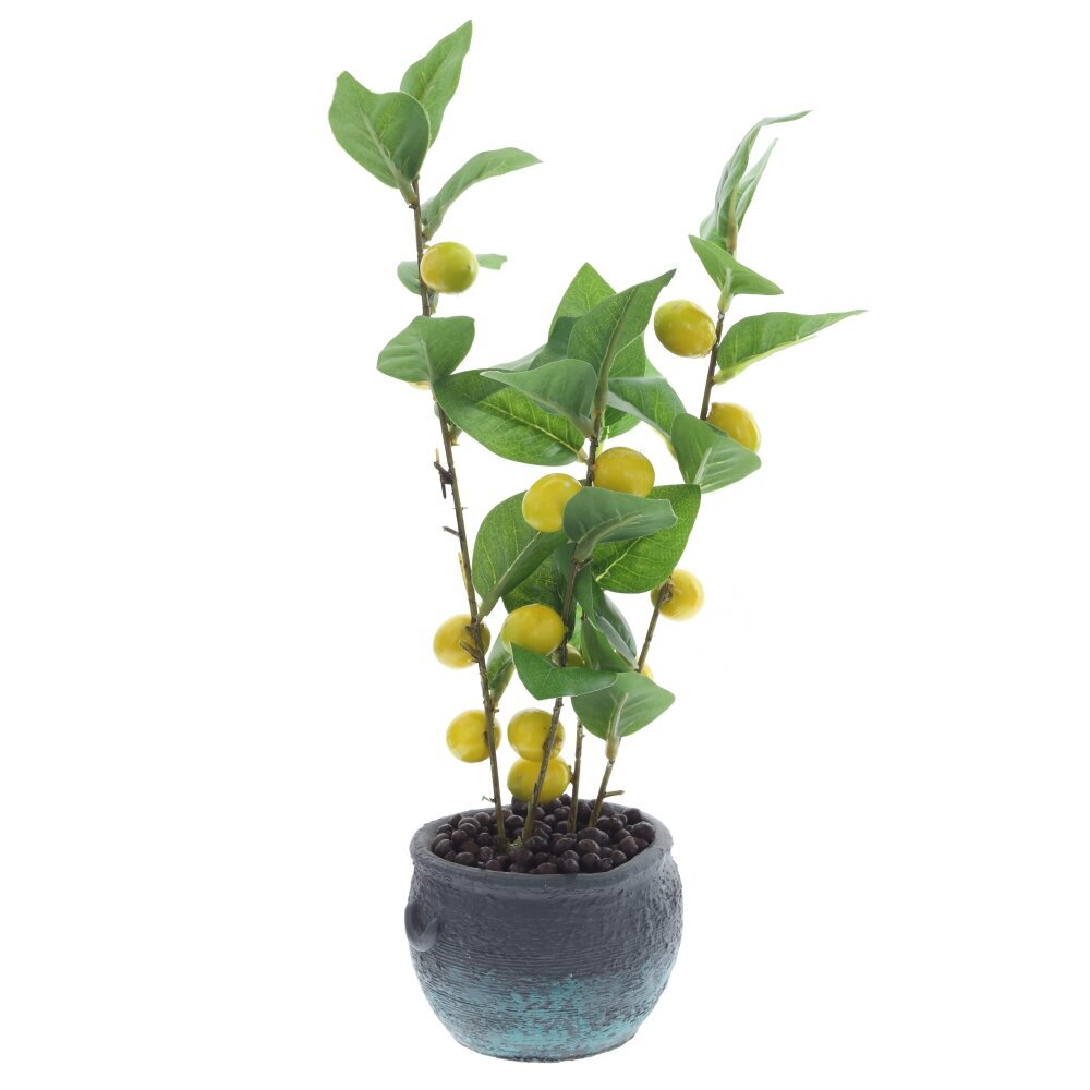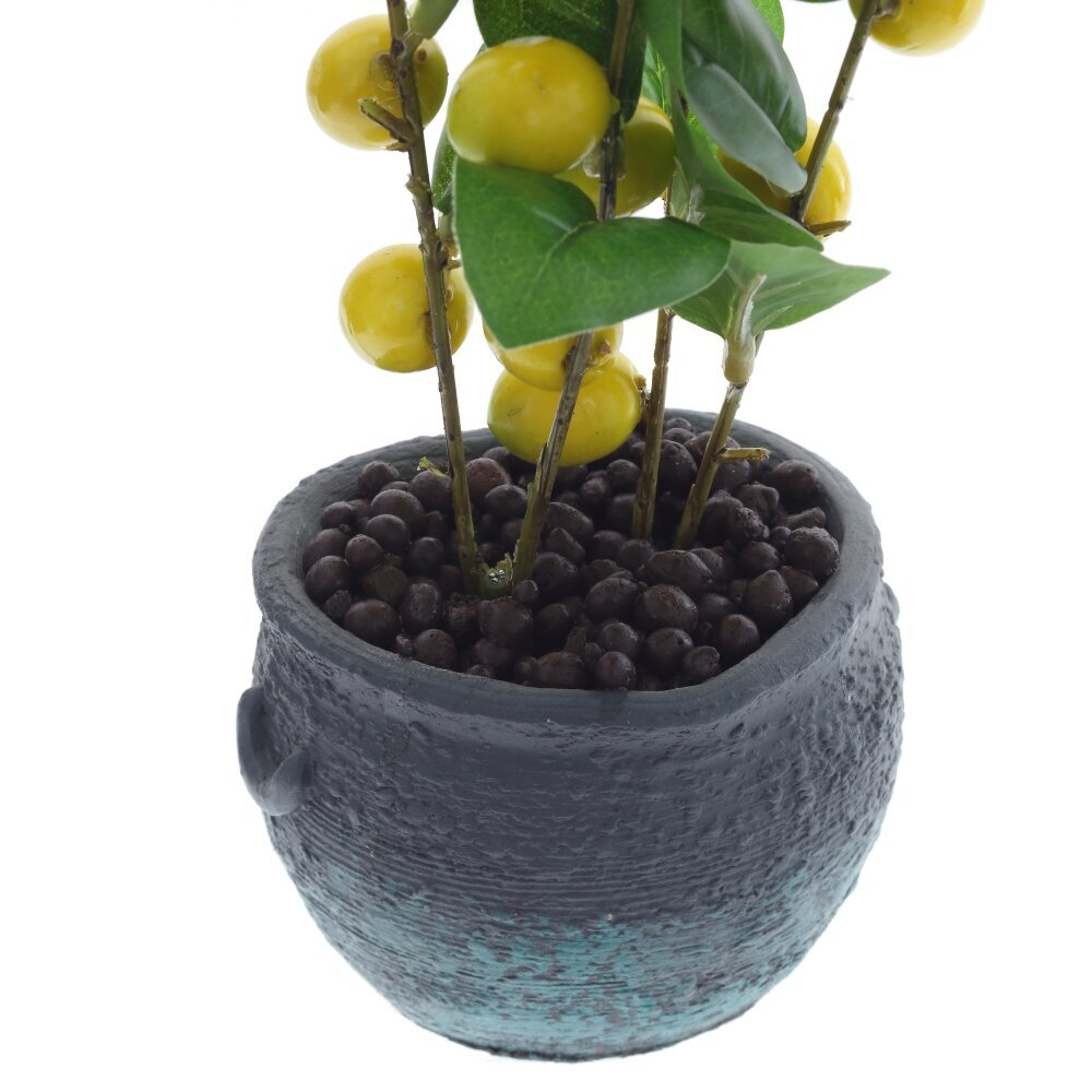 Искусственное дерево "Лимон" представляет собой декоративное украшение, идеально подходящее для интерьера дома или офиса. Его крона с выполненными из текстильных материалов листьями, имитирующих натуральные, придаёт изделию максимально реалистичный вид. Ярко-жёлтые лимоны выполнены из качественных полимерных материалов, устойчивых к выцветанию и деформации. Дерево помещено в горшок, поверхность земли покрыта декоративными камнями, добавляющими общую эстетичность композиции. Такой элемент декора не требует ухода, легко очищается от пыли и надолго сохраняет насыщенные цвета. Искусственное дерево "Лимон" придаст свежести и уюта любому помещению, создавая атмосферу солнечного сада вне зависимости от времени года.