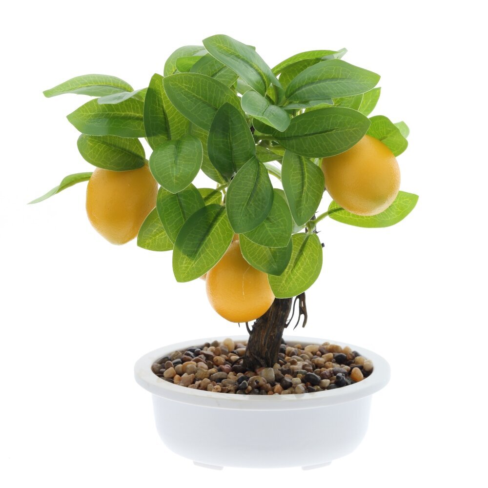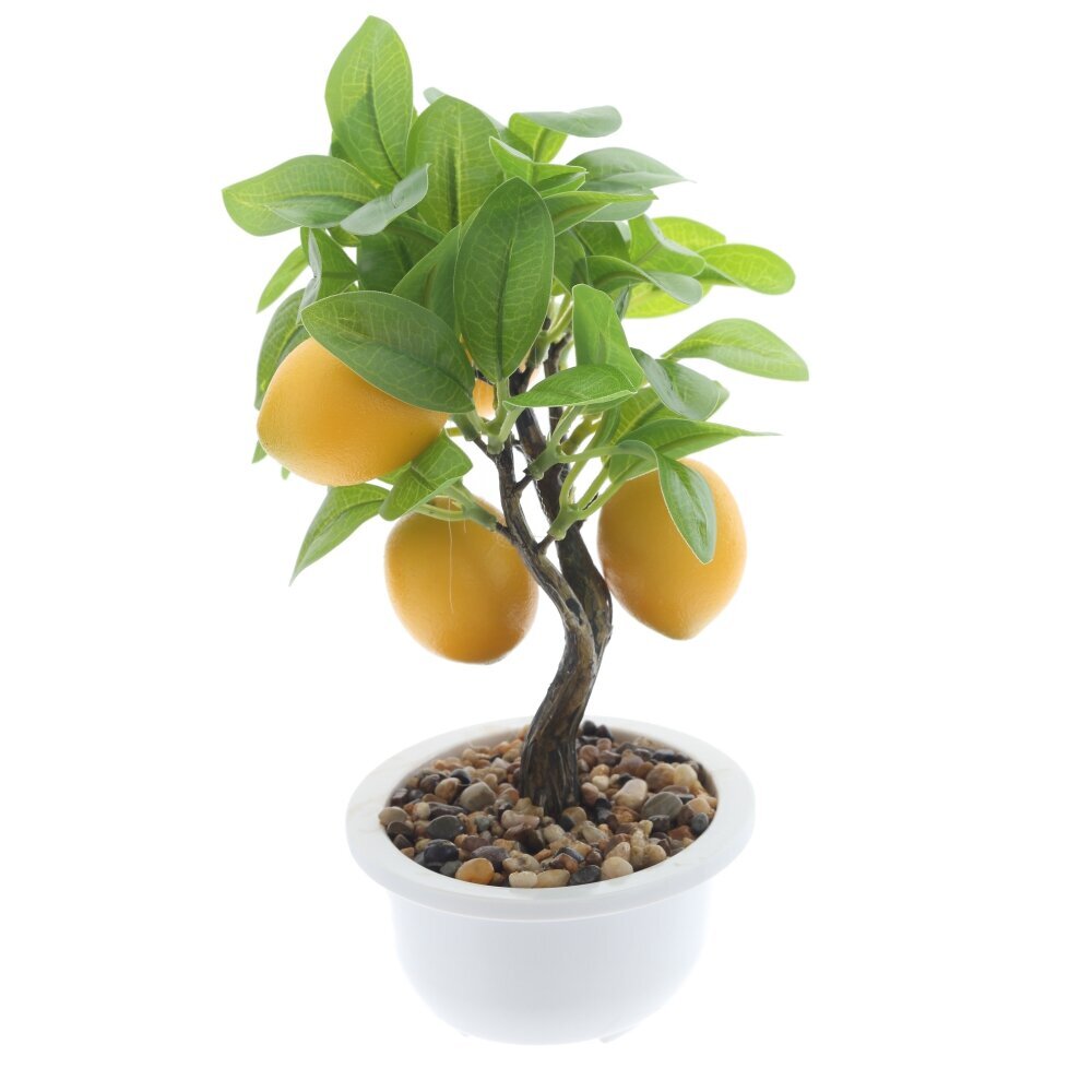 Искусственное дерево "Лимон" представляет собой декоративное украшение, идеально подходящее для интерьера дома или офиса. Его крона с выполненными из текстильных материалов листьями, имитирующих натуральные, придаёт изделию максимально реалистичный вид. Ярко-жёлтые лимоны выполнены из качественных полимерных материалов, устойчивых к выцветанию и деформации. Дерево помещено в горшок, поверхность земли покрыта декоративными камнями, добавляющими общую эстетичность композиции. Такой элемент декора не требует ухода, легко очищается от пыли и надолго сохраняет насыщенные цвета. Искусственное дерево "Лимон" придаст свежести и уюта любому помещению, создавая атмосферу солнечного сада вне зависимости от времени года.