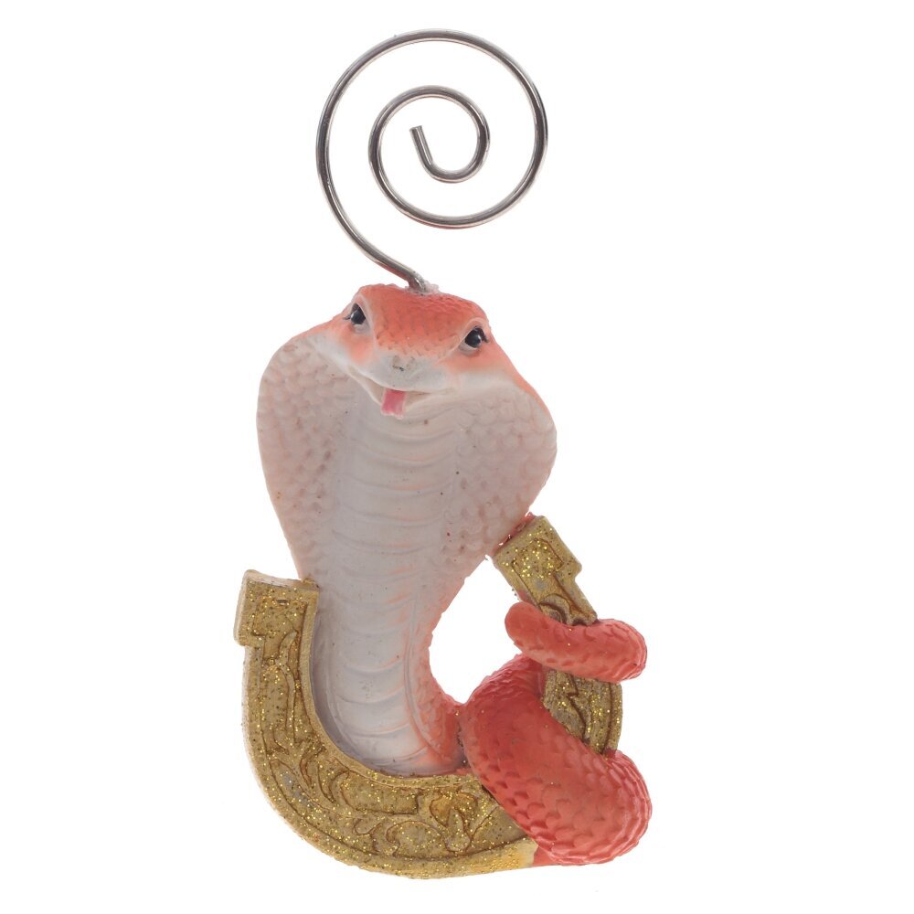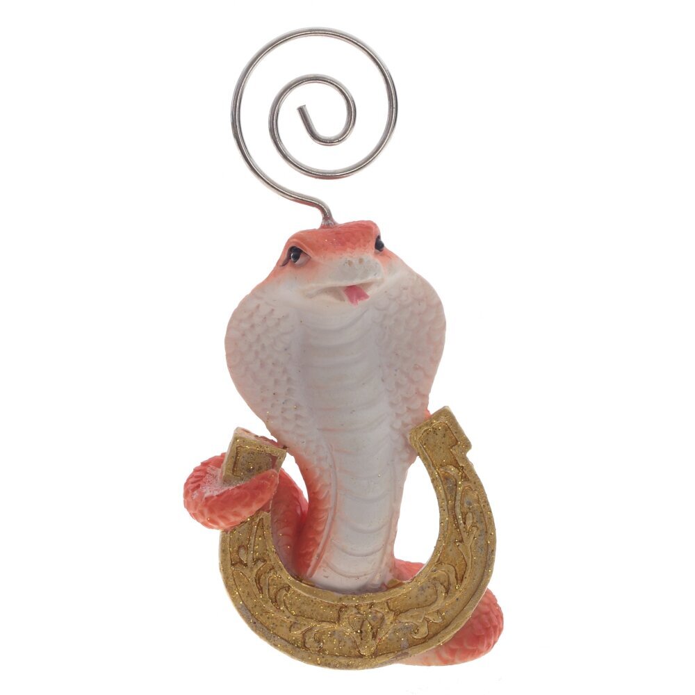 Держатель для визиток и фотографий "Змея" – это элегантный и практичный аксессуар, выполненный из качественного полистоуна. Фигурка змейки-кобры, с величественно поднятой головой, держит в хвосте блестящие золотые символы удачи.Компактные размеры позволяют использовать изделие как в офисе, так и дома. Этот стильный сувенир станет отличным подарком в наступающем году Змеи. Благодаря своему дизайну, держатель также может служить замечательным элементом декора, добавляя изюминку в ваше пространство.
