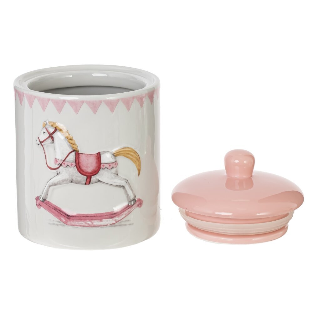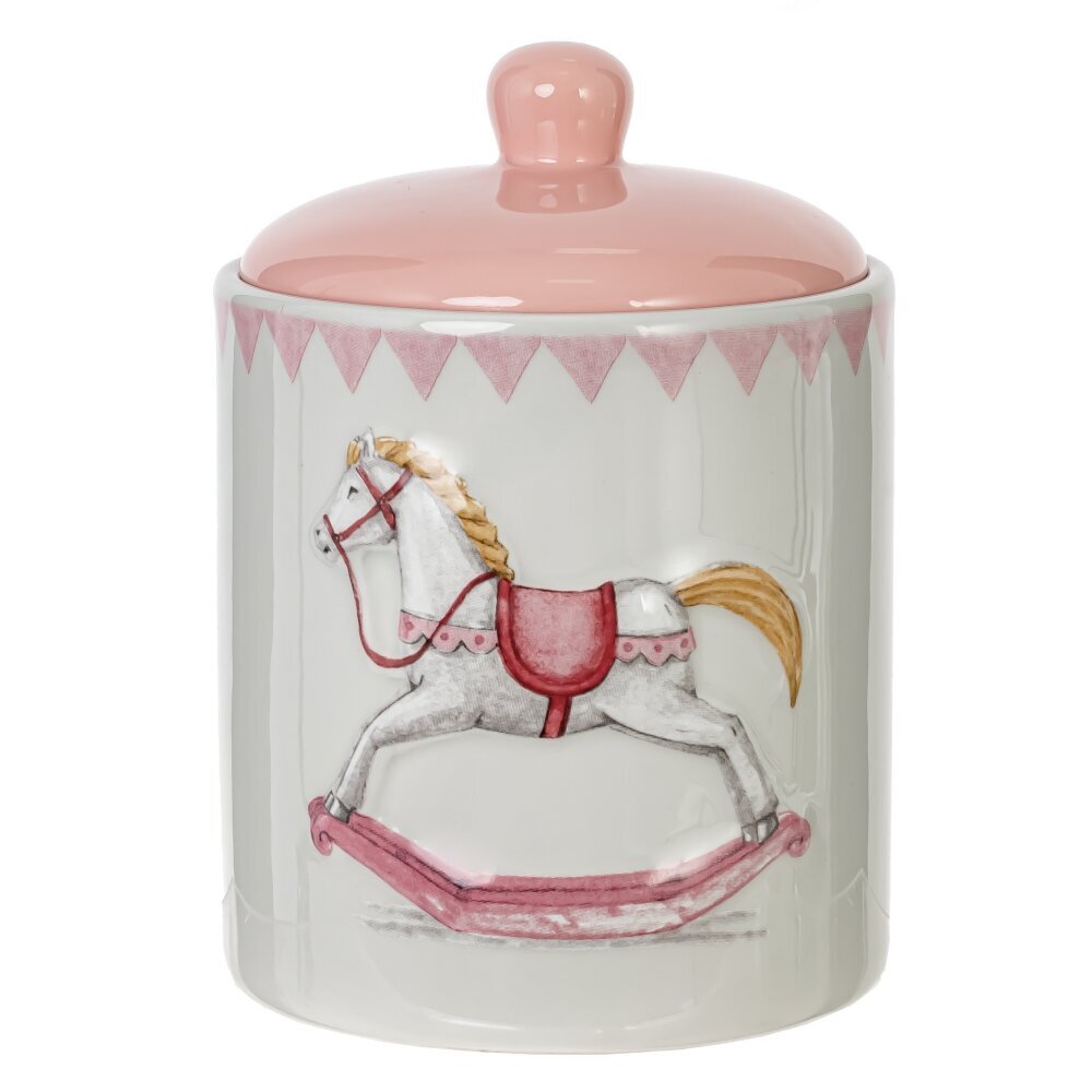 Керамическая ёмкость для сыпучих продуктов с изображением лошадки-качалки — это не только функциональный, но и декоративный элемент кухни. Изготовленная из прочной керамики, она идеально подойдёт для хранения сахара, соли, круп, чая, кофе или других продуктов. Очаровательный рисунок в виде лошадки-качалки придаёт изделию винтажный шарм и создаёт атмосферу уюта. Плотно прилегающая крышка помогает сохранять свежесть и аромат содержимого, защищая от влаги и посторонних запахов. Такая ёмкость станет стильным дополнением интерьера кухни или прекрасным подарком для ценителей красивой посуды. Подходит как для повседневного использования, так и для оформления тематических фотозон, сервировки или подарочных наборов.