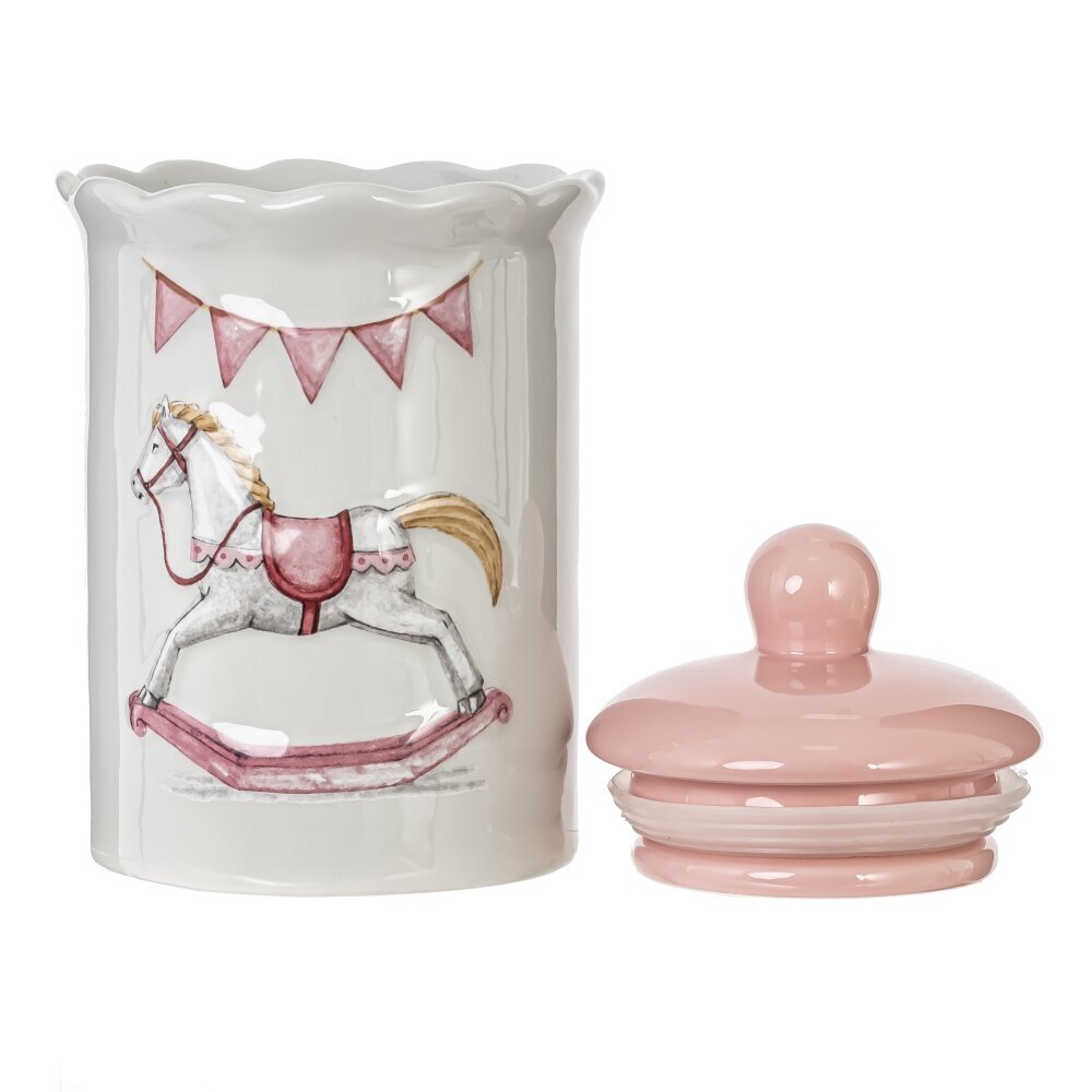 Керамическая ёмкость для сыпучих продуктов с изображением лошадки-качалки — это не только функциональный, но и декоративный элемент кухни. Изготовленная из прочной керамики, она идеально подойдёт для хранения сахара, соли, круп, чая, кофе или других продуктов. Очаровательный рисунок в виде лошадки-качалки придаёт изделию винтажный шарм и создаёт атмосферу уюта. Плотно прилегающая крышка помогает сохранять свежесть и аромат содержимого, защищая от влаги и посторонних запахов. Такая ёмкость станет стильным дополнением интерьера кухни или прекрасным подарком для ценителей красивой посуды. Подходит как для повседневного использования, так и для оформления тематических фотозон, сервировки или подарочных наборов.
