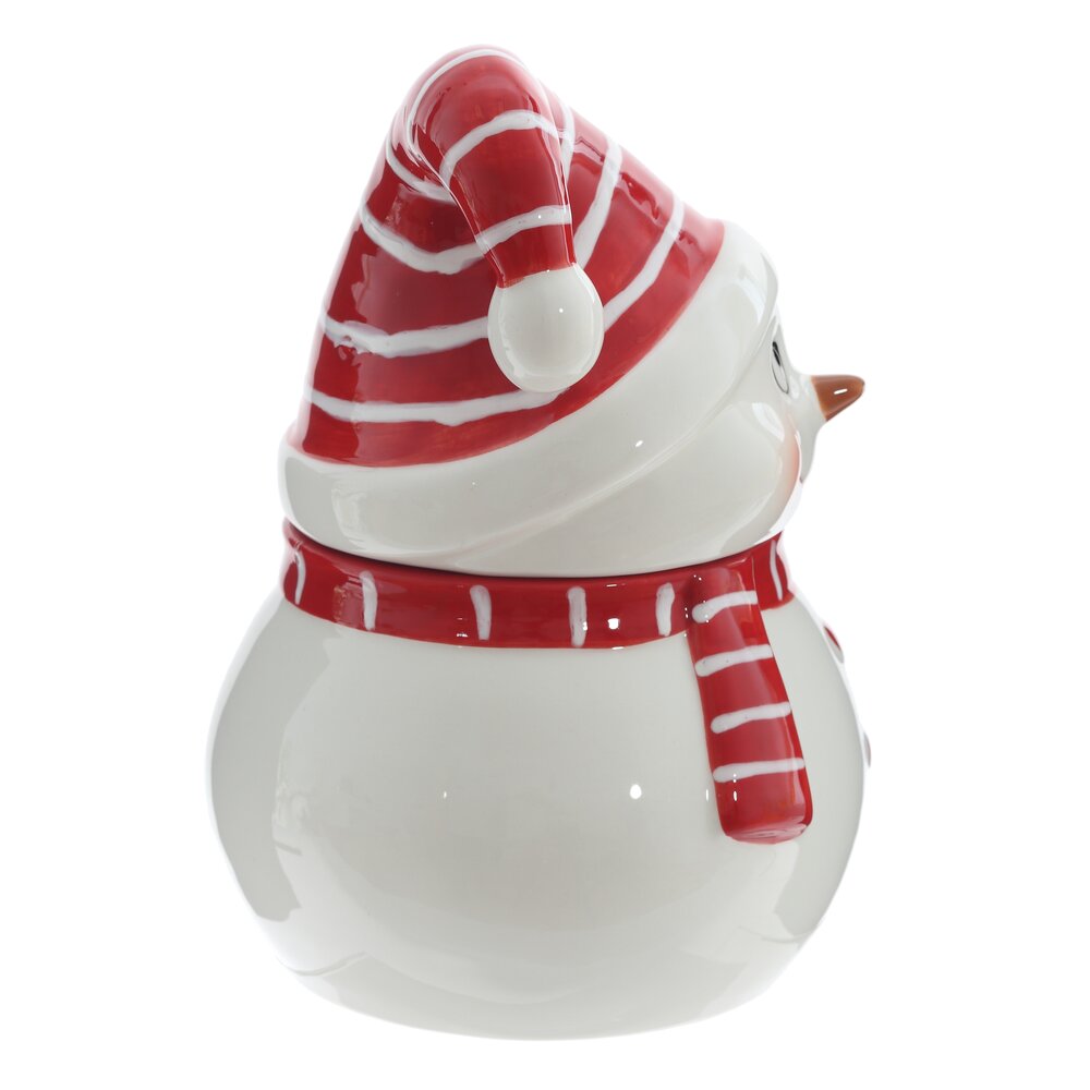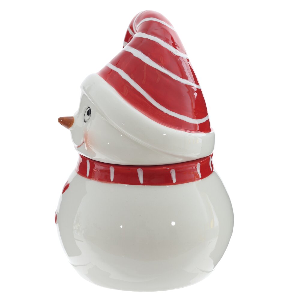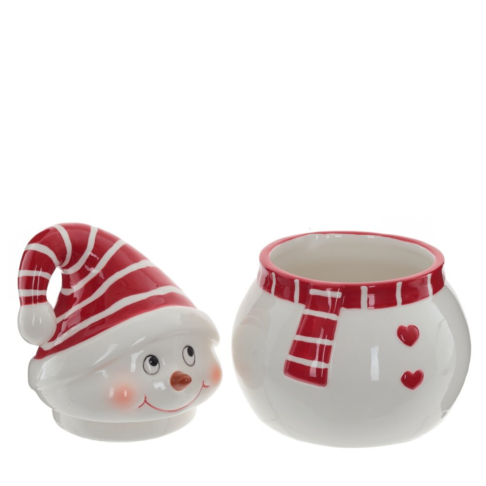 Керамическая емкость выполнена в виде снеговика с милой мордашкой. Она украсит новогоднюю сервировку стола и непременно поднимет настроение гостям.