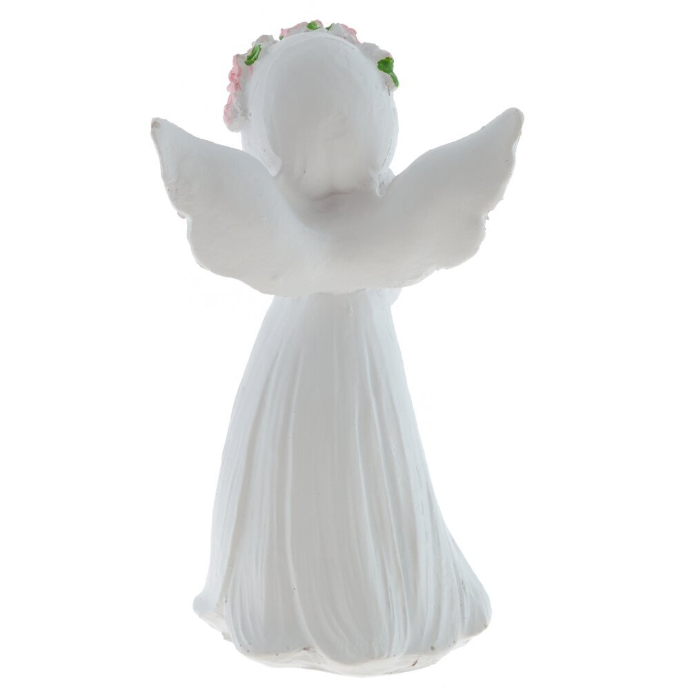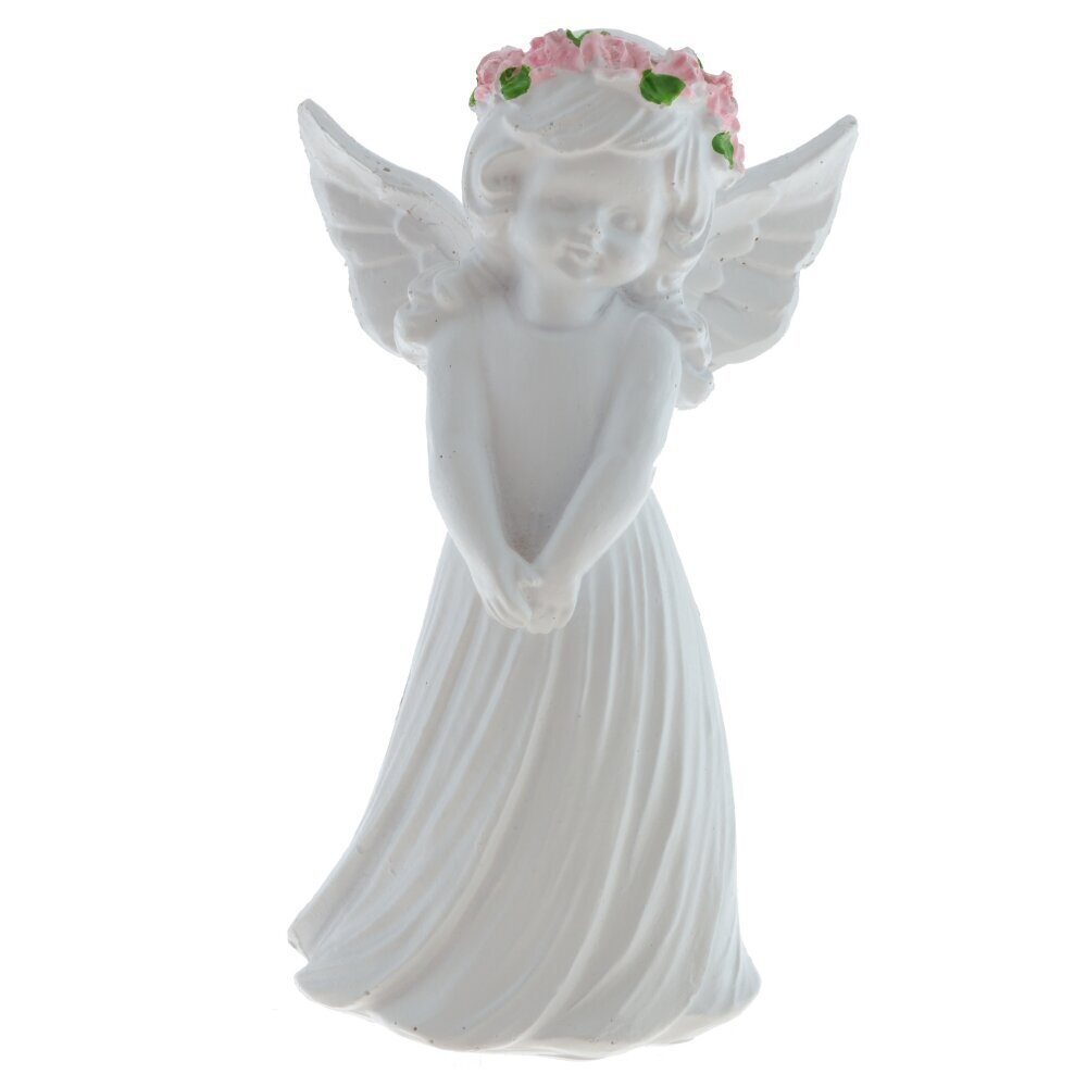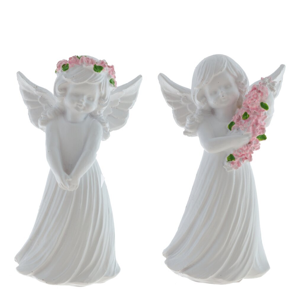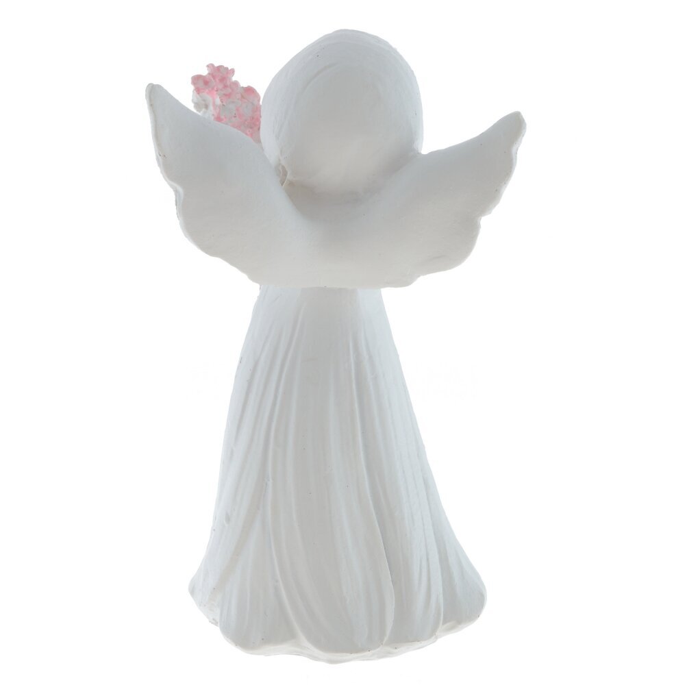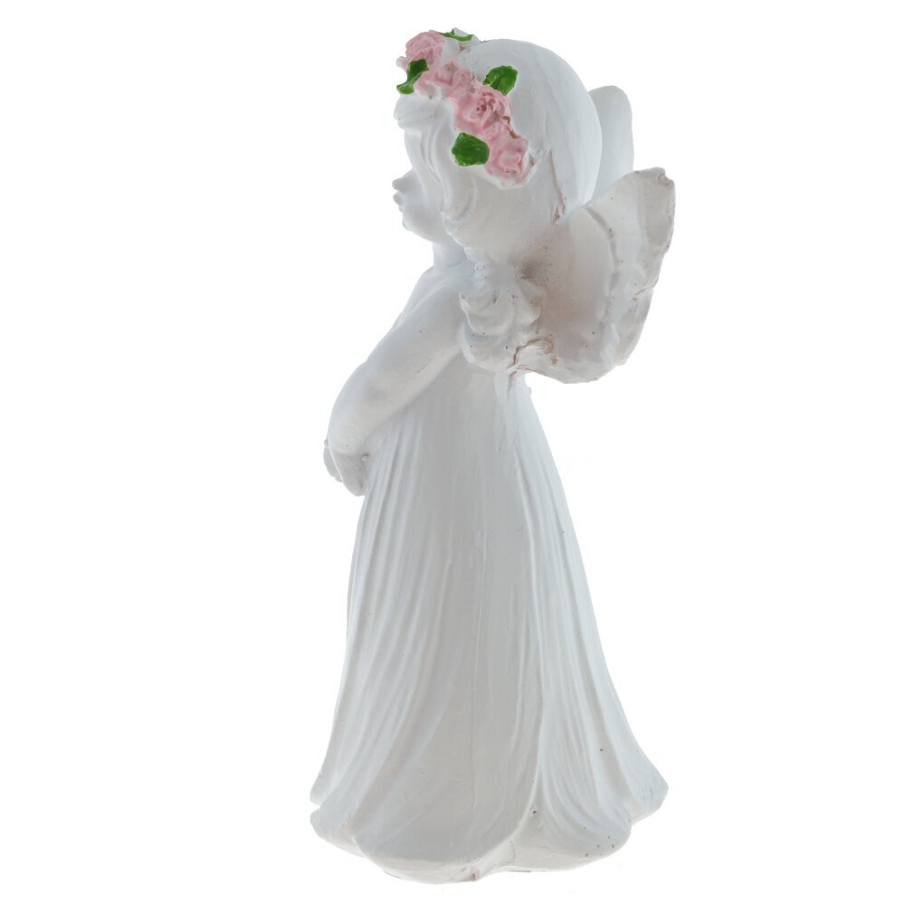Декоративная фигурка ангела выполнена из полимерных материалов и представляет собой изящное изделие белого цвета. Ангел изображен с нежным выражением лица, с распущенными волосами и изогнутыми крыльями за спиной. В руках он держит большой букет розовых цветов с ярко-зелёными листочками, что добавляет фигуре особый шарм и мягкость. Скульптура отличается детальной проработкой складок на платье и тщательно вылепленными чертами лица, что придает ей живость и выразительность. Такая фигурка станет прекрасным украшением интерьера, подойдет для создания уютной атмосферы в доме или может стать символическим подарком близкому человеку. Благодаря использованию современных полимерных материалов фигурка долго сохраняет свой первоначальный внешний вид, устойчива к внешним воздействиям и не требует особого ухода. Представлено в двух вариантах.