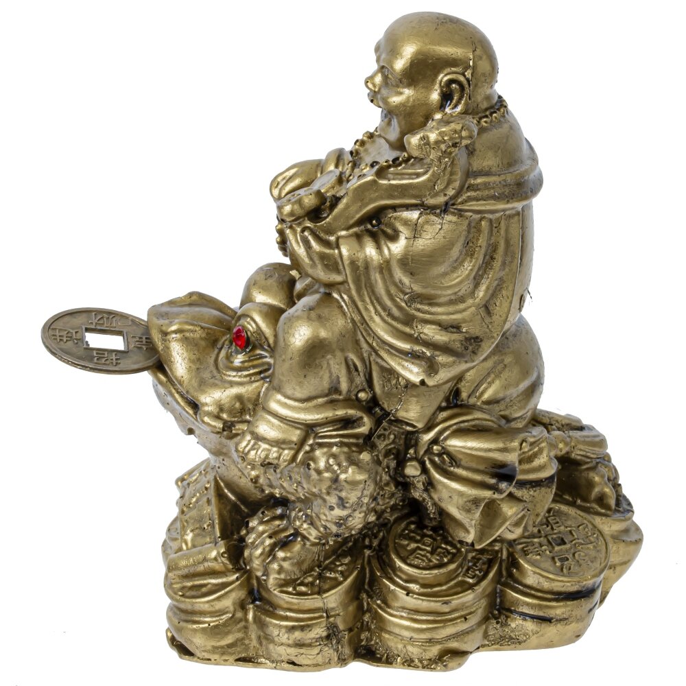 Фигурка декоративная "Будда на денежной лягушке" является прекрасным сочетанием восточной мудрости и современного дизайна, которое создаст уютную и гармоничную атмосферу в вашем доме или офисе. Фигурка изображает мудрого Будду, сидящего на спине лягушки. Традиционный символ из культуры Востока, этот образ символизирует богатство и процветание. Эта фигурка также может стать замечательным подарком для близких людей, которых вы хотите ободрить или пожелать им удачи в финансовых делах.