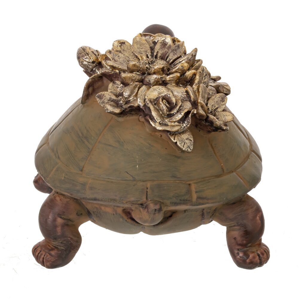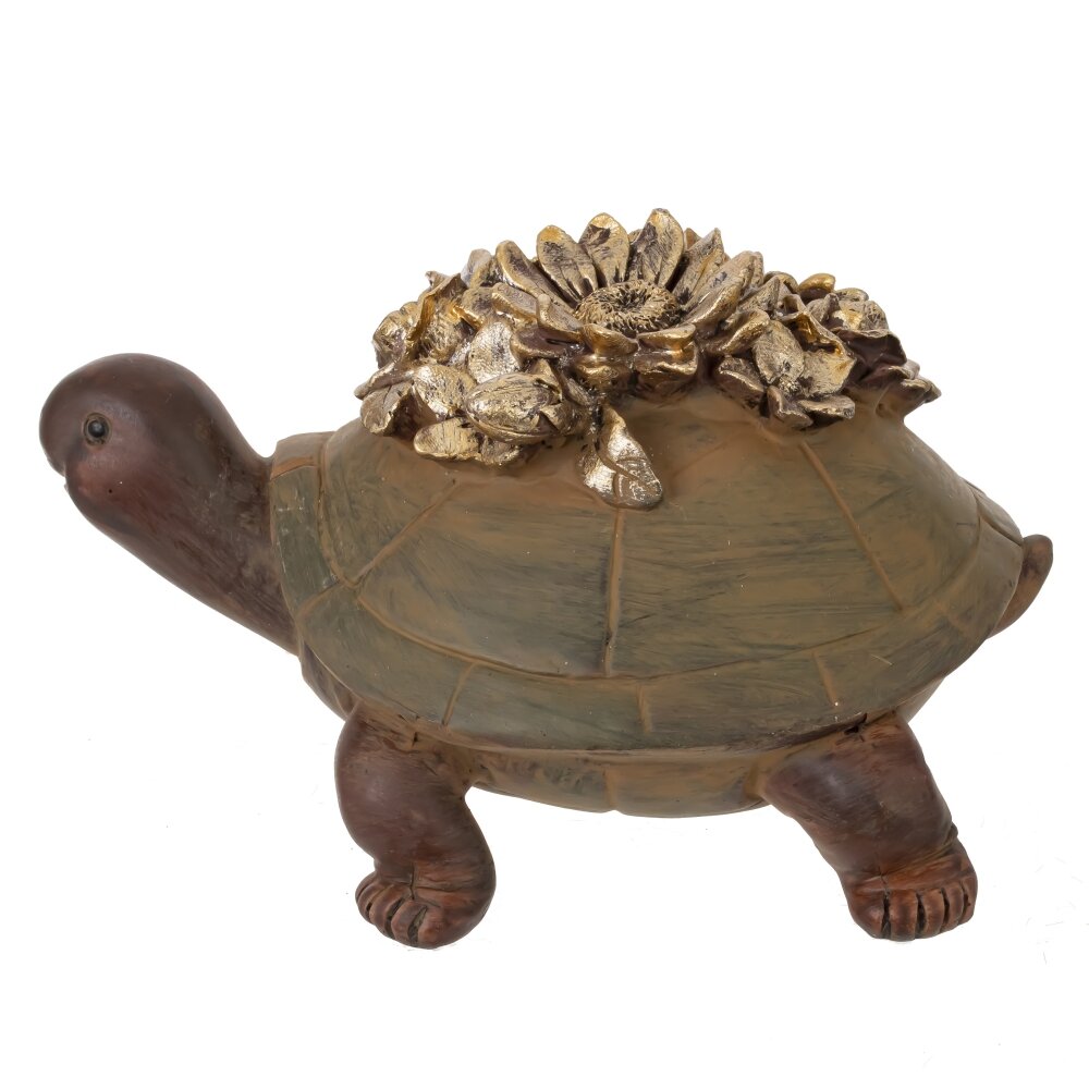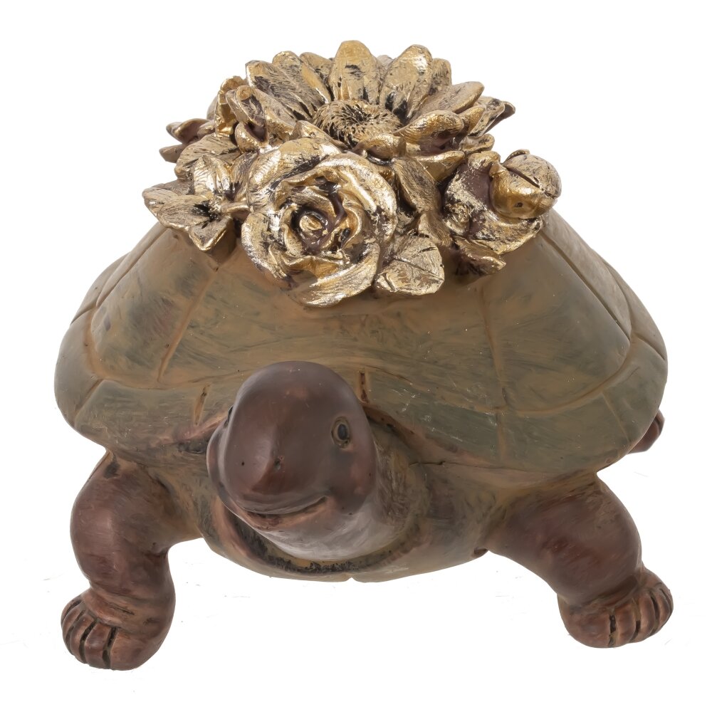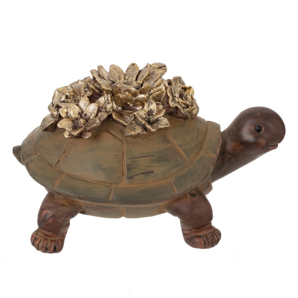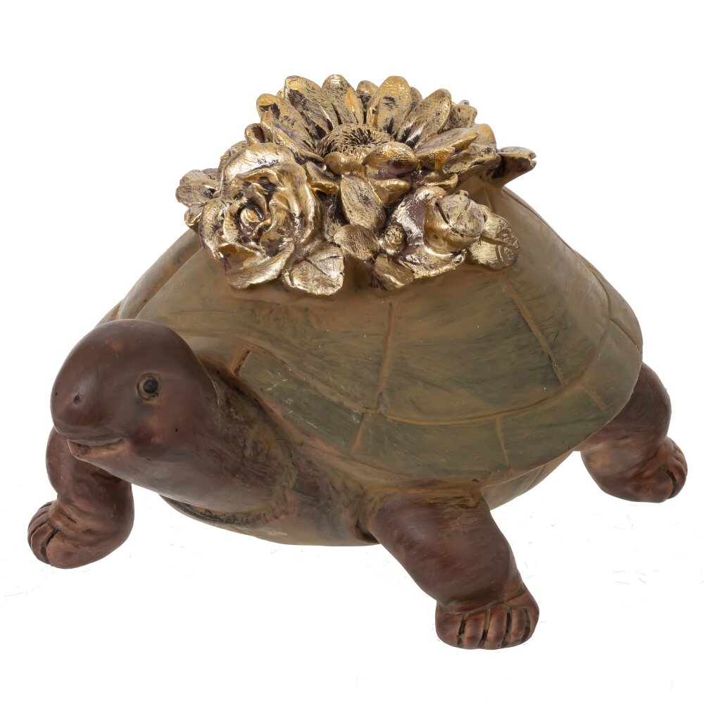 Эта декоративная фигурка в виде черепахи станет изысканным украшением для вашего интерьера. Выполнена из прочных полимерных материалов, она надежна и долговечна. Детализированная текстура придаёт реалистичность, а золотистые цветы на спине добавляют элегантности и оригинальности. Идеально подойдет для любителей необычного декора, создавая уютную атмосферу. Отличный выбор для подарка друзьям или близким, особенно тем, кто увлекается тематикой природы и животных. Украсьте свой дом этой милой фигуркой!