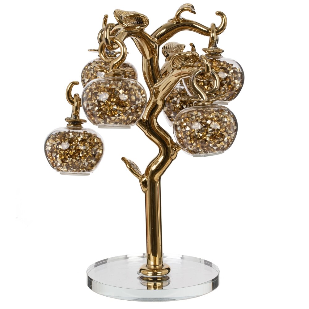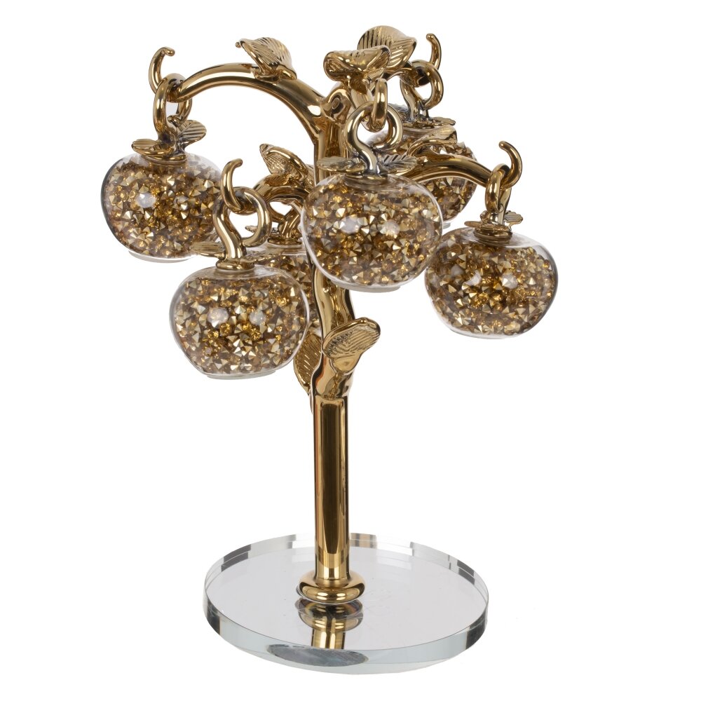 Декоративная фигурка "Дерево" высотой 18 см – это изысканный элемент, который привнесет в ваш интерьер атмосферу гармонии и тепла. Изготовленная из качественного стекла, она представляет собой элегантное дерево с живописными золотыми плодами, которые сверкают и играют на свету, привлекая к себе вниманием. Золотые плоды символизируют богатство, процветание и успех, что делает эту фигурку не только стильным украшением, но и отличным подарком для друзей и близких, подчеркивающим важность новых начинаний и достижения целей. Она станет замечательным акцентом на полке, столе или в витрине, придавая вашему пространству уникальность и шарм. Элемент гармонично впишется в любой стиль интерьера – от классики до современного минимализма, наполняя его атмосферой уюта и комфорта. Эта фигурка станет неизменным источником вдохновения и радости для всех, кто ее увидит.