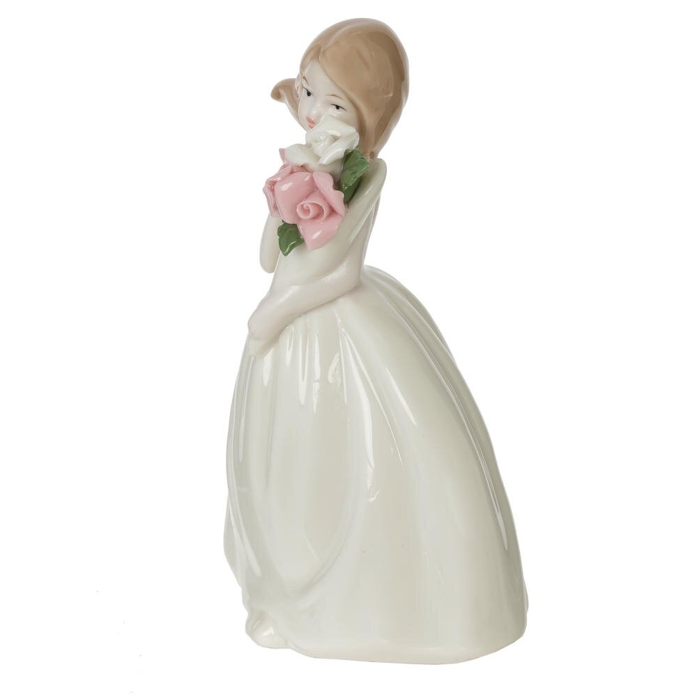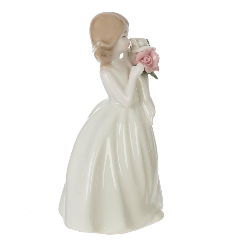 Фигурка представляет собой девочку в белом длинном платье, с букетом цветов в руке. Изделие выполнено из фарфора в нежных пастельных тонах и имеет множество деталей, которые придают ей красоту и элегантность.