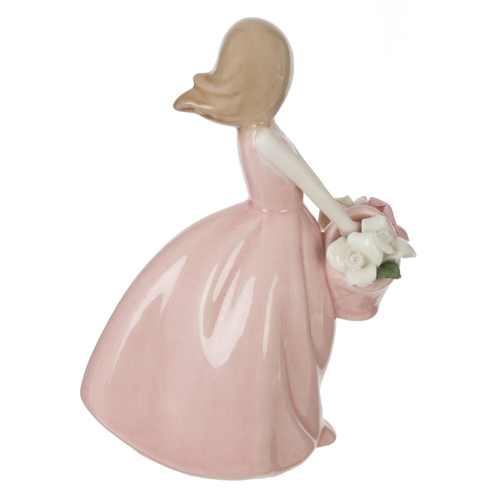 Декоративная фигурка «Девочка» из фарфора – изящный акцент для интерьера в нежном романтичном стиле. Девочка в длинном розовом платье держит корзинку с аккуратно проработанными цветами, а плавные линии силуэта создают ощущение легкого движения. Гладкая глянцевая поверхность подчеркивает мягкие пастельные оттенки и изысканность деталей. Фигурка станет гармоничным дополнением гостиной, спальни или детской, украсит полку, каминную зону или туалетный столик. Идеальный вариант подарка к любому празднику для тех, кто ценит уют и красоту классического фарфора.