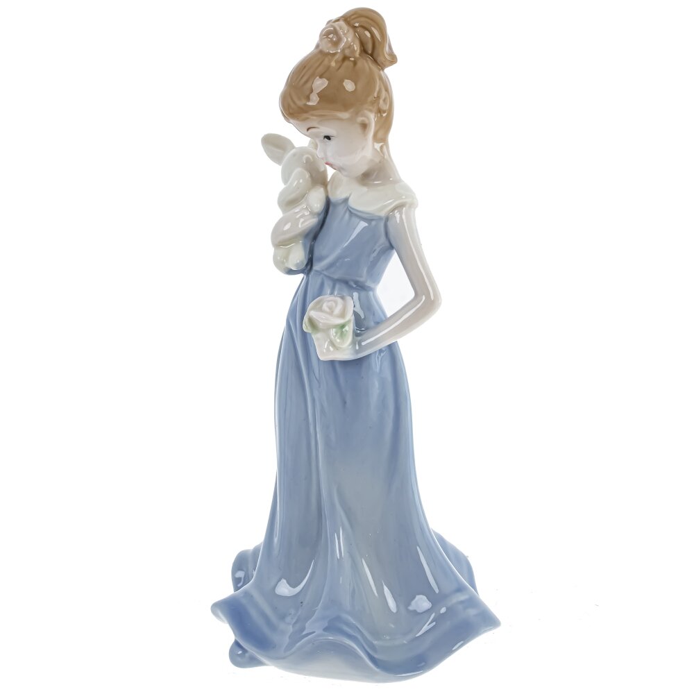 Эта декоративная фигурка привлечет взгляды всех любителей изящных предметов интерьера. Изготовленная из качественного фарфора, она обладает неповторимым очарованием и изысканностью. Девочка в голубом платье выглядит очень мило и нежно, а маленький кролик, придает этой композиции игривый и жизнерадостный настрой. Фигурка обладает отличной проработкой деталей - выразительное лицо девочки, тонкие рисунки на платье, реалистичная текстура кролика - все это делает этот предмет по-настоящему уникальным. Размеры фигурки позволяют расположить ее на полке, комоде или столике, добавив нотку изыска в любое помещение.