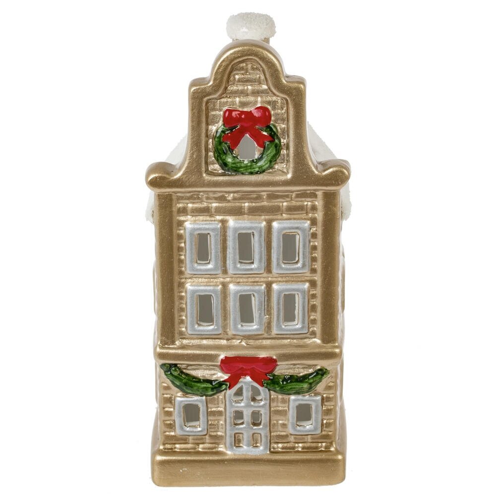 Чудесная фигурка домика с заснеженной крышей. Одним нажатием пальца вы можете внести в этот домик уют, "включив" в нем свет. Фигурка декоративная "Домик" с подсветкой, изготовлена из керамики. Работает от двух батареек LR44.