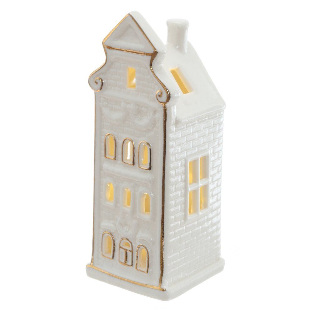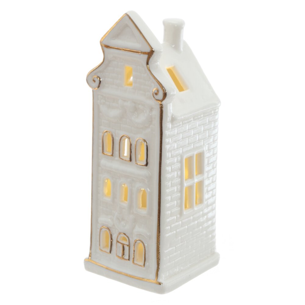 Декоративная фигурка из белого фарфора Домик с подсветкой — это элегантное и стильное украшение, которое привнесет в ваш дом атмосферу уюта и изысканности. Фигурка выполнена из высококачественного белого фарфора, что придает ей утончённый и светлый вид. Особенностью изделия является встроенная подсветка, которая создаёт мягкое, тёплое сияние, подчеркивающее детали фарфоровой поверхности и придающее декору особое очарование в тёмное время суток. Такое украшение идеально подойдет оформления интерьера в праздничный период или как самостоятельный акцент на полке, столе или окне. Лёгкость и изысканность фарфора в сочетании с нежным светом создают волшебную атмосферу и привлекают внимание, становясь ярким и незаменимым элементом декора.