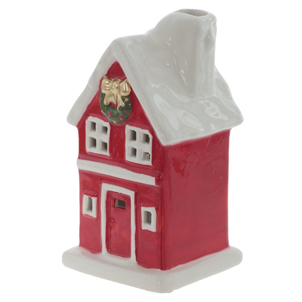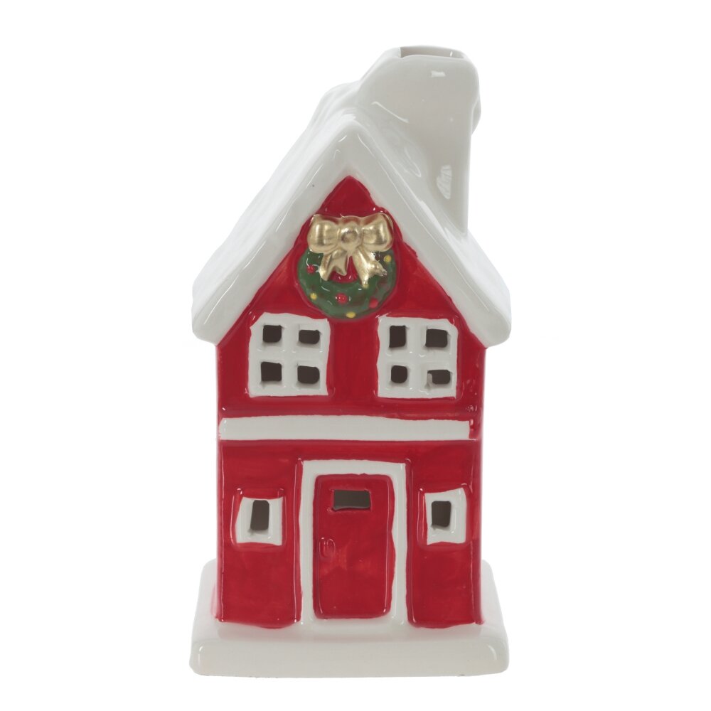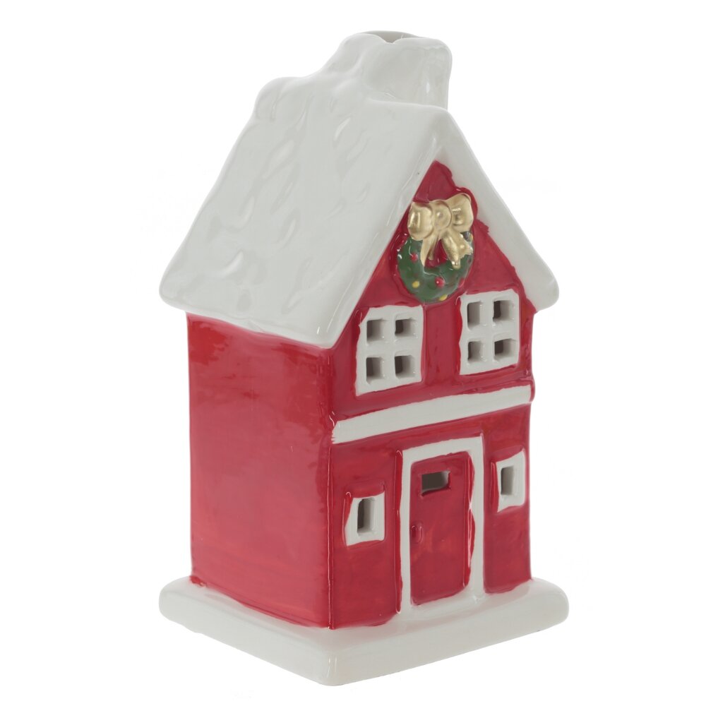 Декоративная фигурка "Домик" с подсветкой станет ярким акцентом в вашем интерьере. Изготовлен из керамики с глянцевым покрытием и оформлен в виде красного таун-хауса с треугольной заснеженной крышей, трубой и рождественским венком. При включении через прорези в окнах пробивается мягкий теплый свет, создавая уютную атмосферу. Фигурка работает от трех батареек типа LR44, которые входят в комплект. С фигуркой "Домик" каждый вечер будет напоминать о тепле домашнего очага, создавая атмосферу праздника в любое время года.