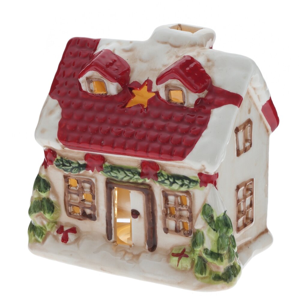 Эта очаровательная миниатюра станет прекрасным дополнением к вашему праздничному декору. Домик выполнен в классических новогодних цветах , украшен новогодним декором , что создает атмосферу волшебного Рождества. Блестящая поверхность фарфора придает фигурке особое праздничное очарование.Встроенная подсветка, спрятанная в домике, создает мягкое и теплое свечение, которое делает его еще более уютным и привлекательным. В темное время суток, окна домика будут ярко гореть, напоминая о волшебстве праздника. Разместите фигурку на каминной полке, на праздничном столе или на полке с другими новогодними украшениями - она будет гармонично вписываться в любой интерьер и создавать атмосферу праздника.