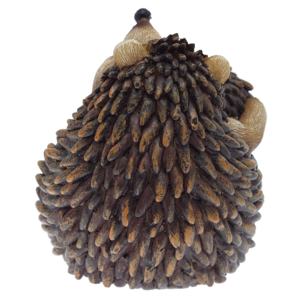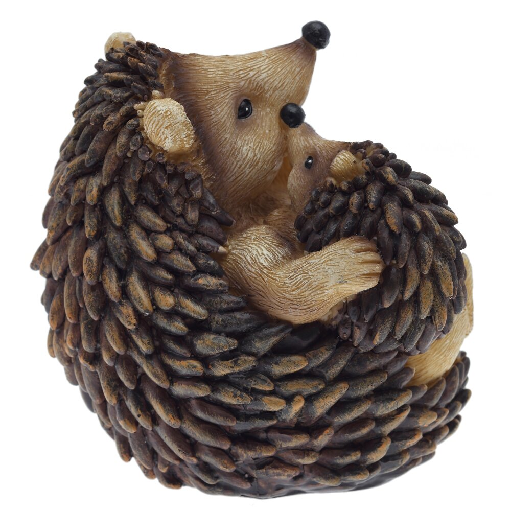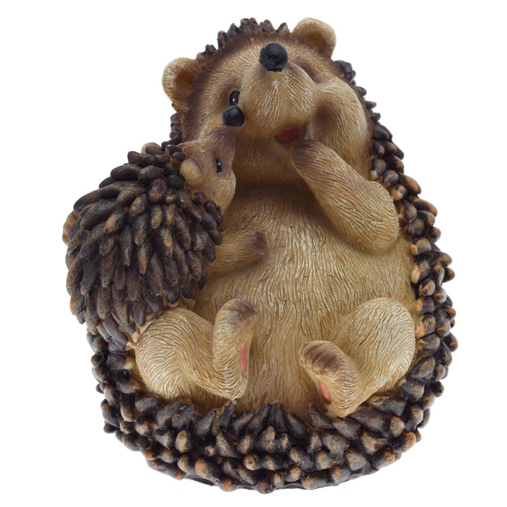 Декоративная фигурка "Ежик", выполненная из полимерных материалов. Композиция состоит из двух ежиков: большого и маленького, что создает атмосферу уюта и заботы. Большой ежик сидит на спине, держит лапки у мордочки, а маленький ежонок нежно прижимается к нему, словно обнимает. Фигурка отличается детальной проработкой: видна имитация иголок и шерсти, что делает изделие очень реалистичным и привлекательным. Ярко выраженные черты мордочек ежиков придают композиции добродушное, трогательное выражение. Такое декоративное изделие отлично подойдет для украшения интерьера дома или офиса, станет приятным подарком для коллекционеров и любителей животных. Полимерные материалы обеспечивают прочность и долговечность фигурки, позволяя сохранять ее внешний вид на долгое время.