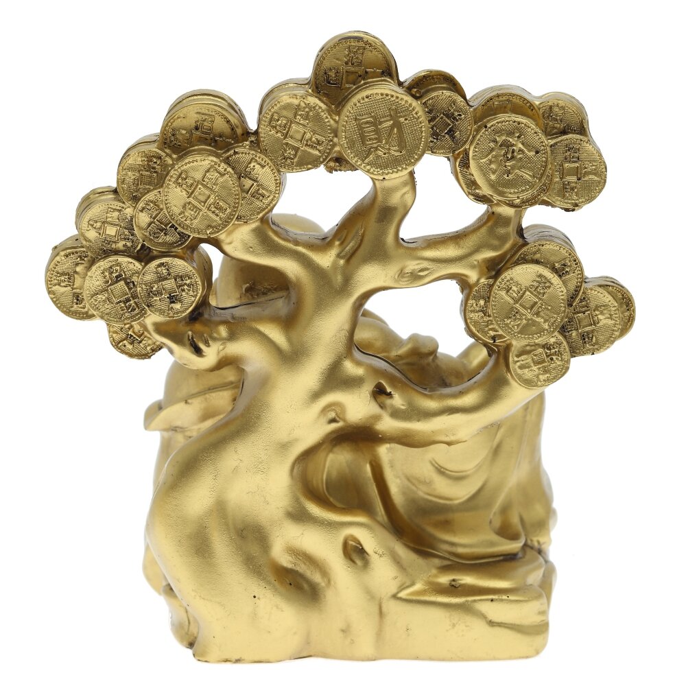 Декоративная фигурка "Хотэй" из полимерных материалов выполнена в золотистом цвете и символизирует удачу, богатство и благополучие. В китайской традиции Хотэй считается богом счастья и процветания, а его смеющееся лицо олицетворяет радость и беззаботность. В данной композиции Хотэй изображен сидящим перед денежным деревом, украшенным старинными китайскими монетами, что усиливает его ассоциацию с финансовым достатком. В одной руке он держит чашу, а в другой — мешок, наполненный богатствами. Такая фигурка станет отличным украшением для дома или рабочего стола, привлекая положительную энергию и успех в финансовых делах.
