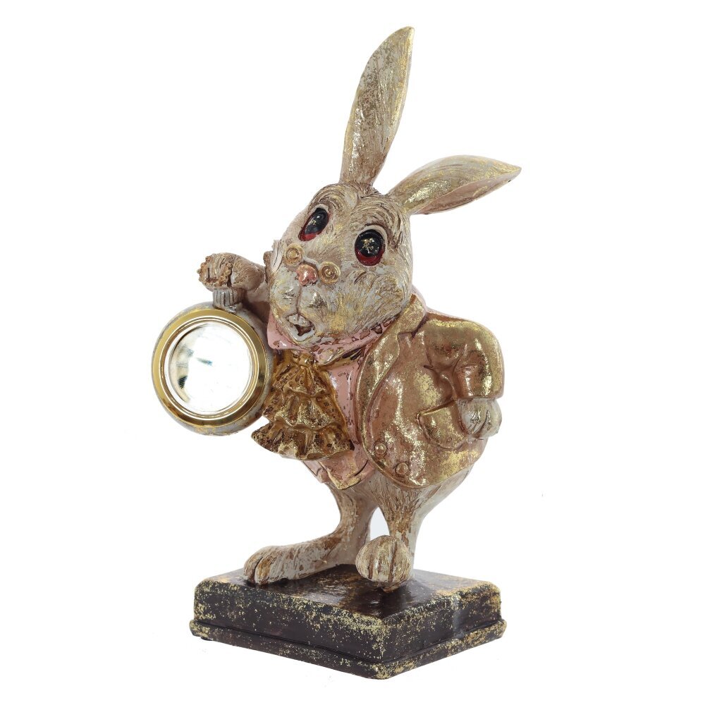 Фигурка Зайца с декоративными часами. Красота этого персонажа вне конкуренции. Его роскошный наряд притягивает, а воображение рисует удивительный сказочный дворец. Часы с римскими цифрами, работают от одной батарейки LR44 (не прилагается).