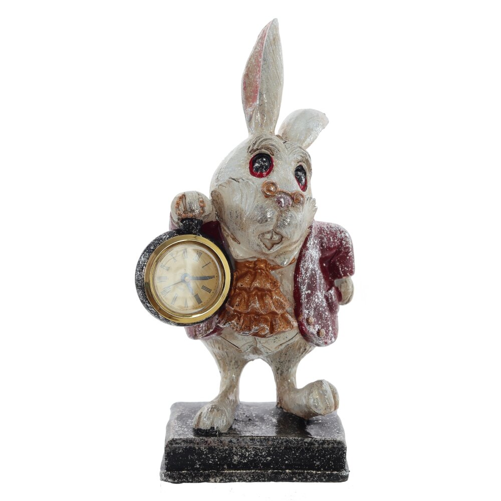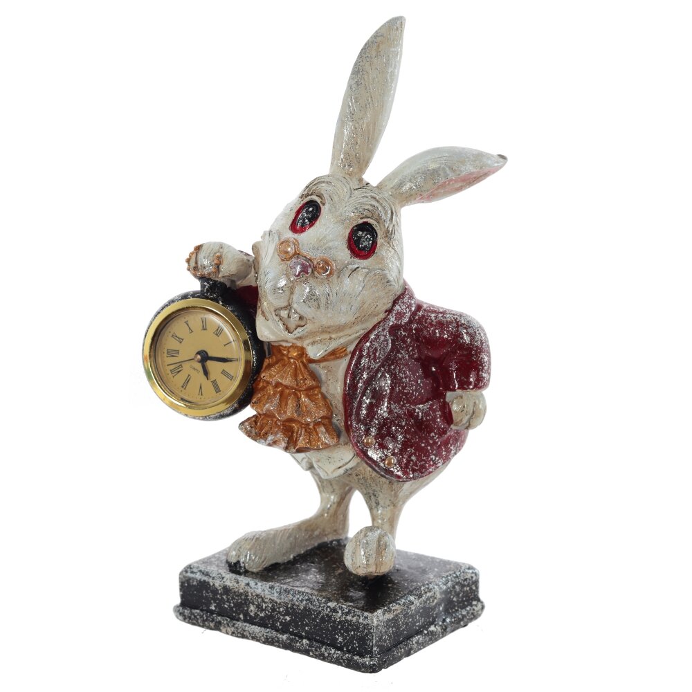 Фигурка Зайца с декоративными часами. Красота этого персонажа вне конкуренции. Его роскошный наряд притягивает, а воображение рисует удивительный сказочный дворец. Часы с римскими цифрами, работают от одной батарейки LR44 (не прилагается).