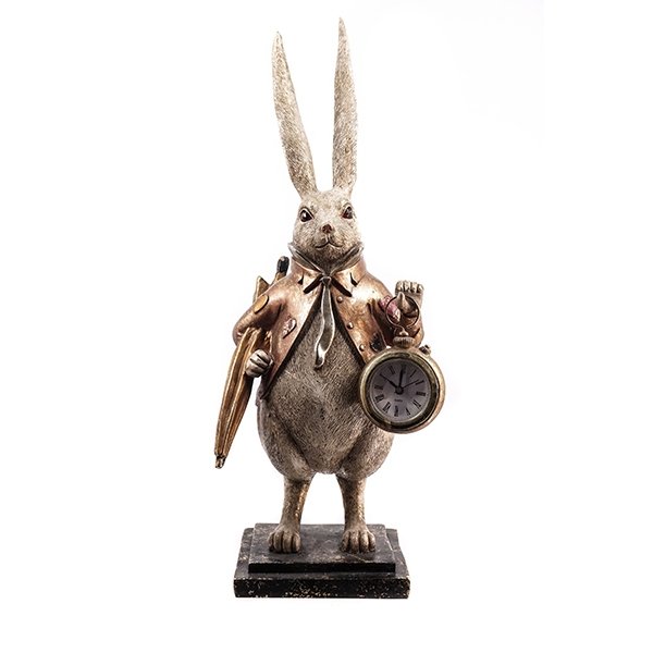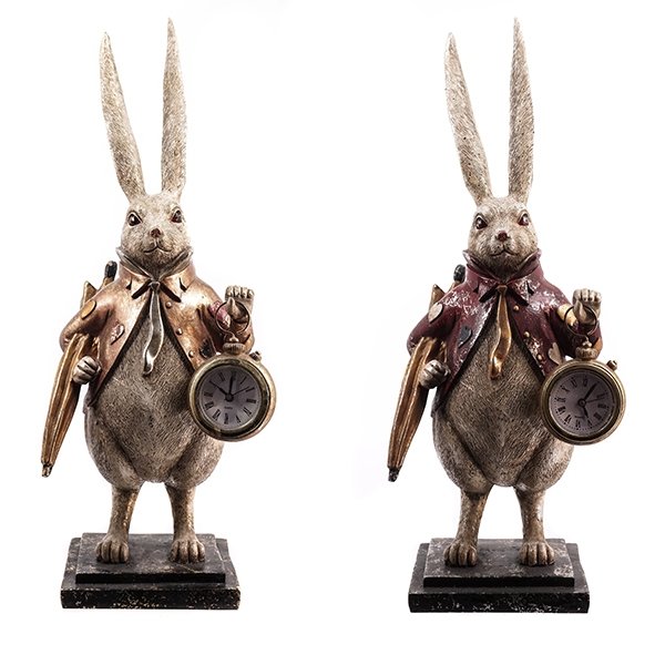 Фигурка Зайца с декоративными часами. Красота этого персонажа вне конкуренции. Его роскошный наряд притягивает, а воображение рисует удивительный сказочный дворец. Представлена в двух вариантах. Часы с римскими цифрами, работают от одной батарейки L1154 (прилагается).