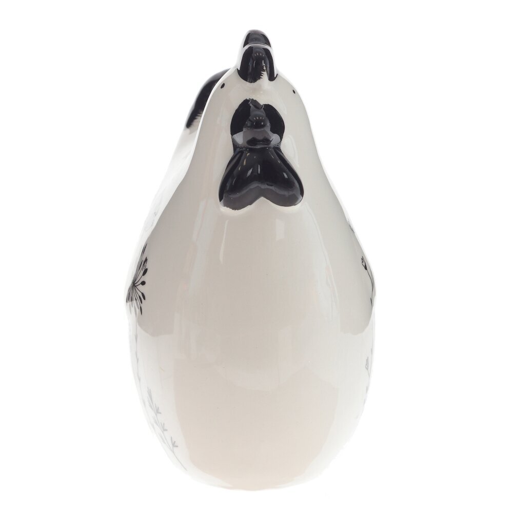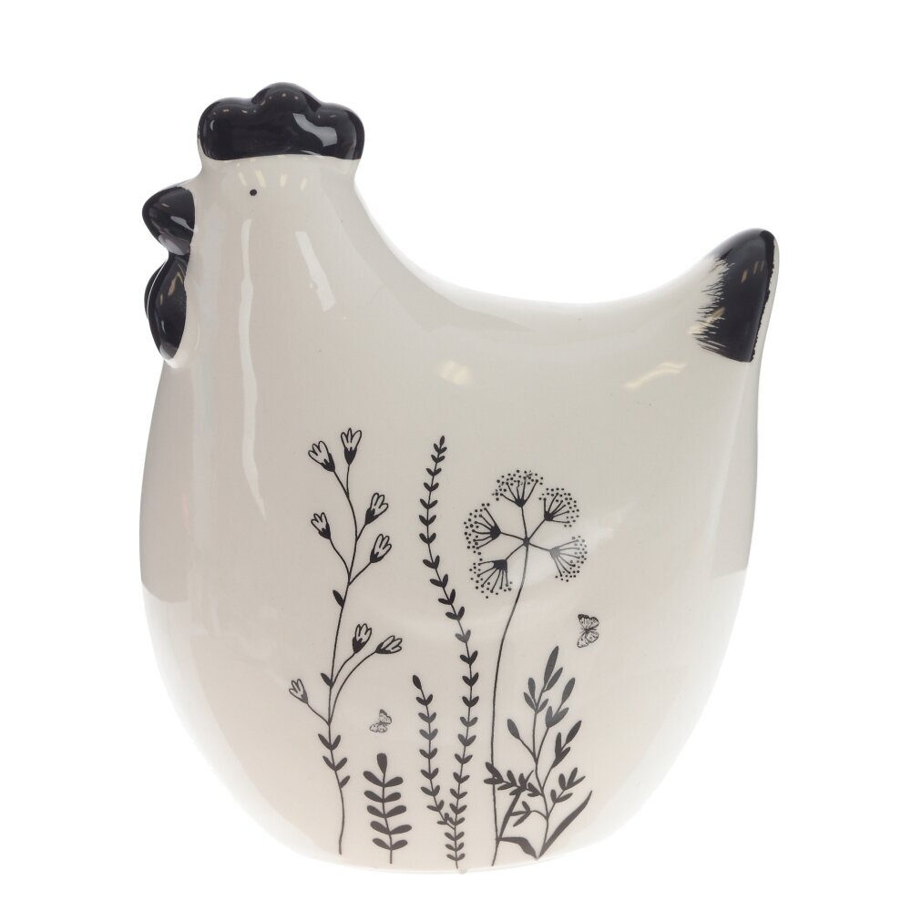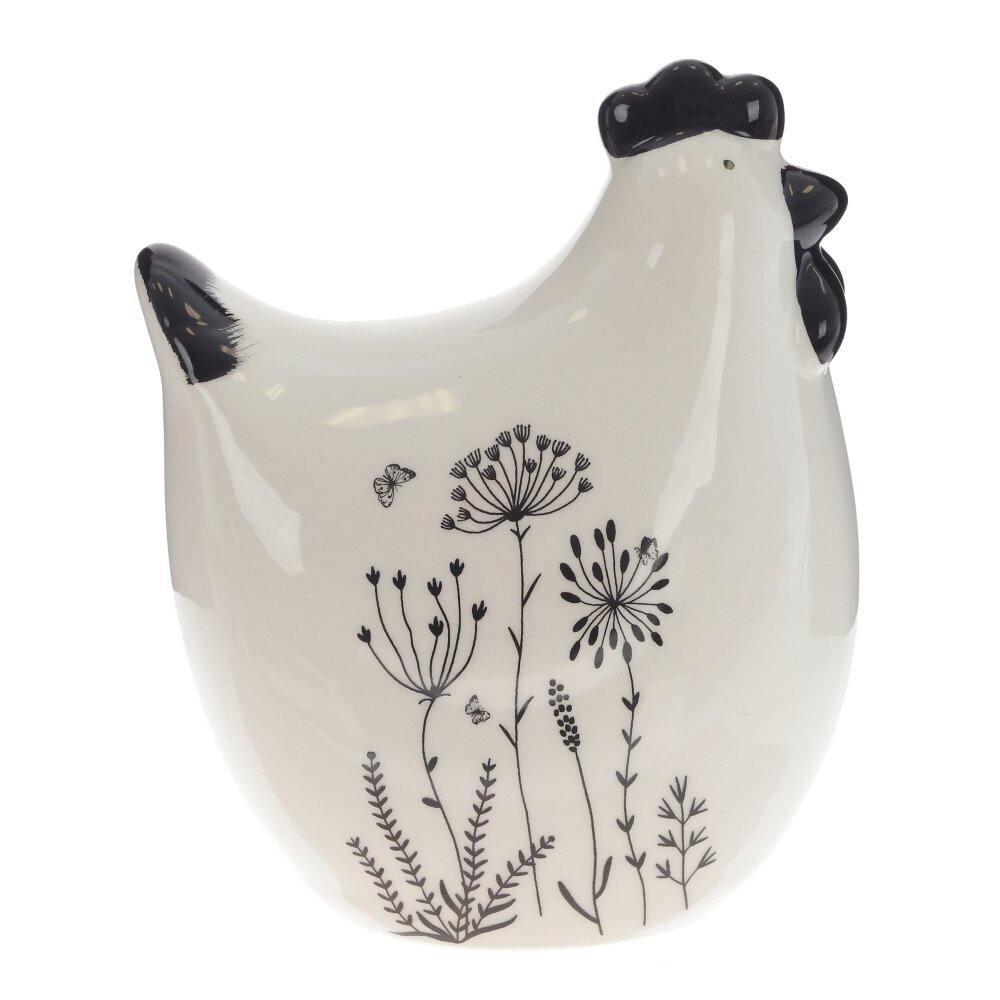 Фигурка "Курица" - прекрасное украшение для вашего дома. Изготовленная из керамики, она обладает прочностью и изящностью в равной мере. Фигурка имеет небольшие размеры , что позволяет легко разместить ее в любом уголке помещения. Белый цвет придает ей нежность и шарм, а цветочный декор черного цвета делает ее более привлекательной и стильной. Такой милый образ добавит в ваш интерьер нотку загадочности и утонченности.